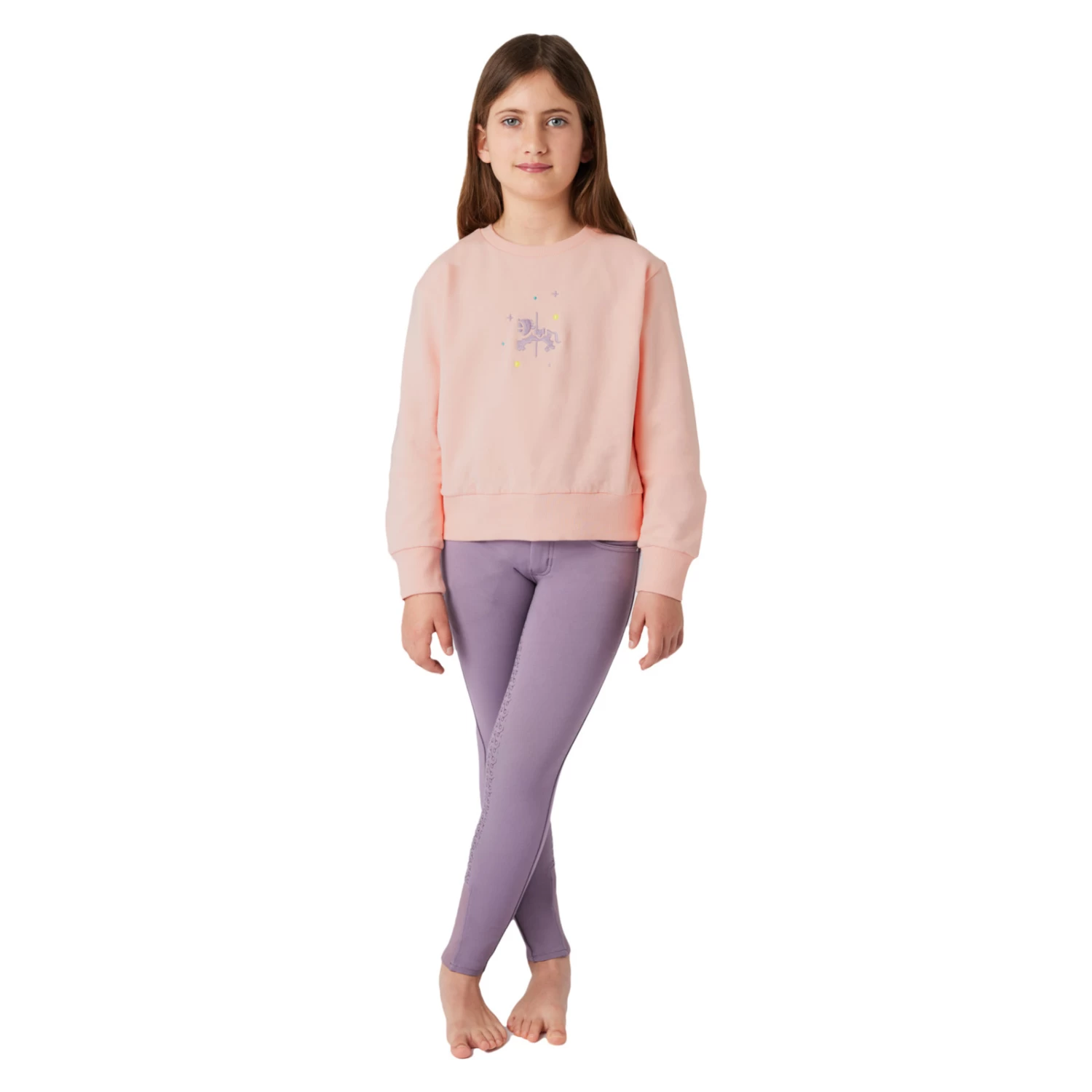 Match your pony’s outfit with the Horze Emmalyn Kids’ Sweater. The front is adorned with a delicate Magical Carousel embroidery. Softly brushed inside for added warmth.