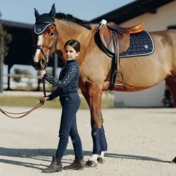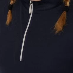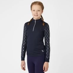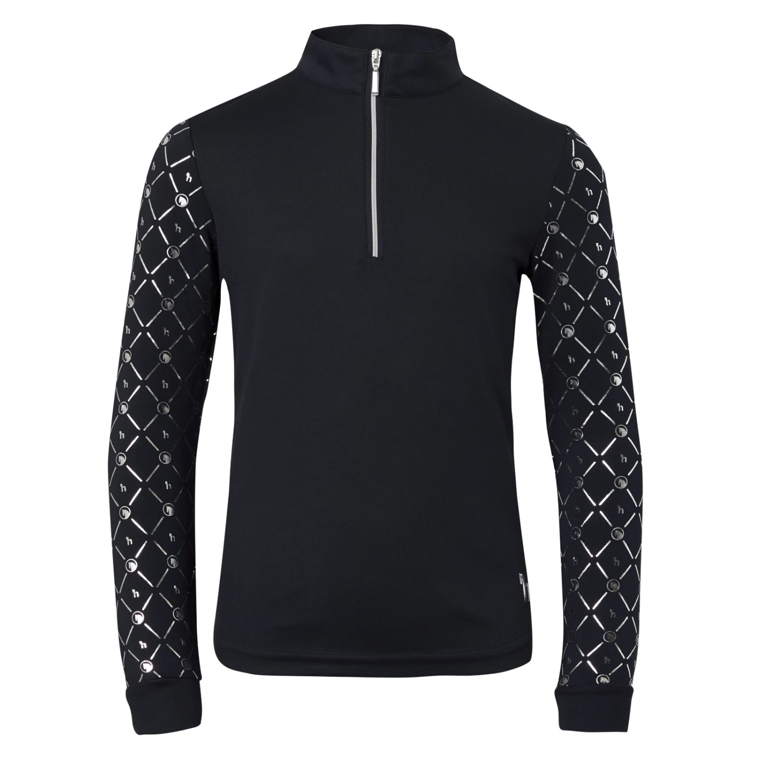 The Horze Fia shirt is perfect for daily training or shows. It is equipped with a front zipper to keep little riders cool. The silver print adds a pretty feature to the sleeves. Also available with short sleeves.