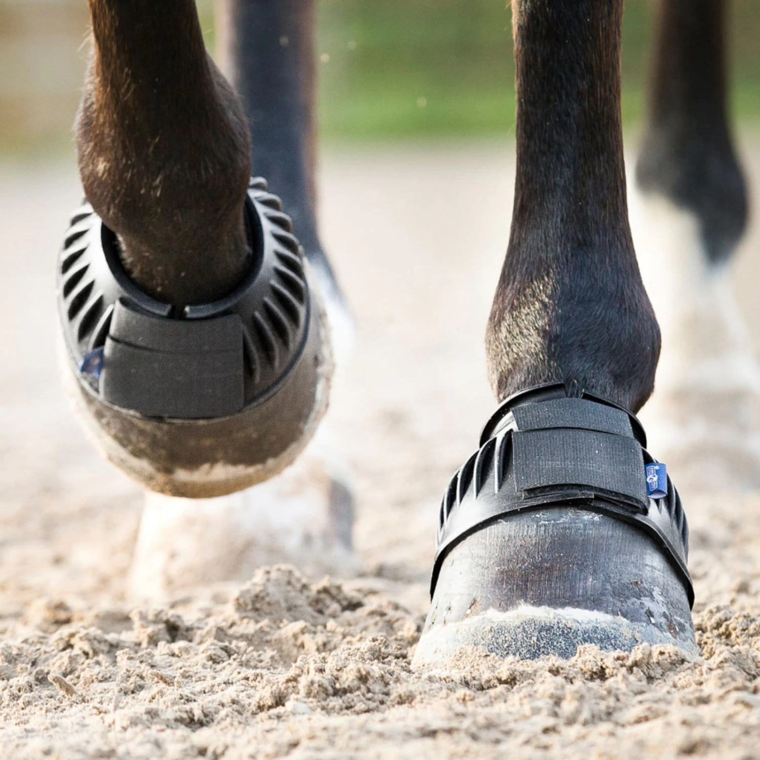 Classic ribbed rubber bell boots with hook-and-loop closures are designed for light work or simple turnout.