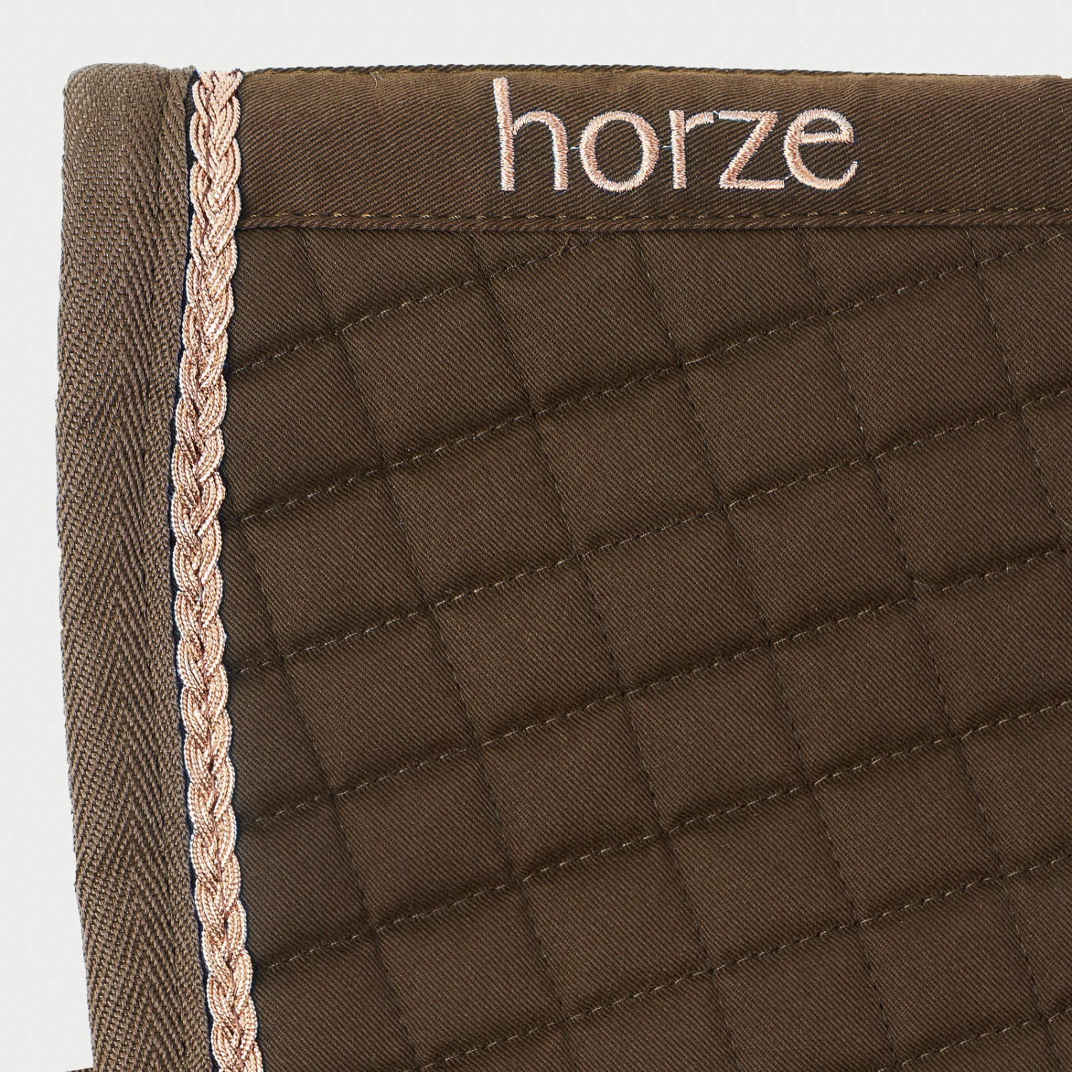 The Horze Glarus saddle pad is lined with quick-dry fabric that wicks away any moisture. Square quilting provides padding beneath the saddle. Braided piping runs all the way around the saddle pad, bringing a little bling to your tack. Combine this saddle pad with our Horze Glarus ear net for a full look!