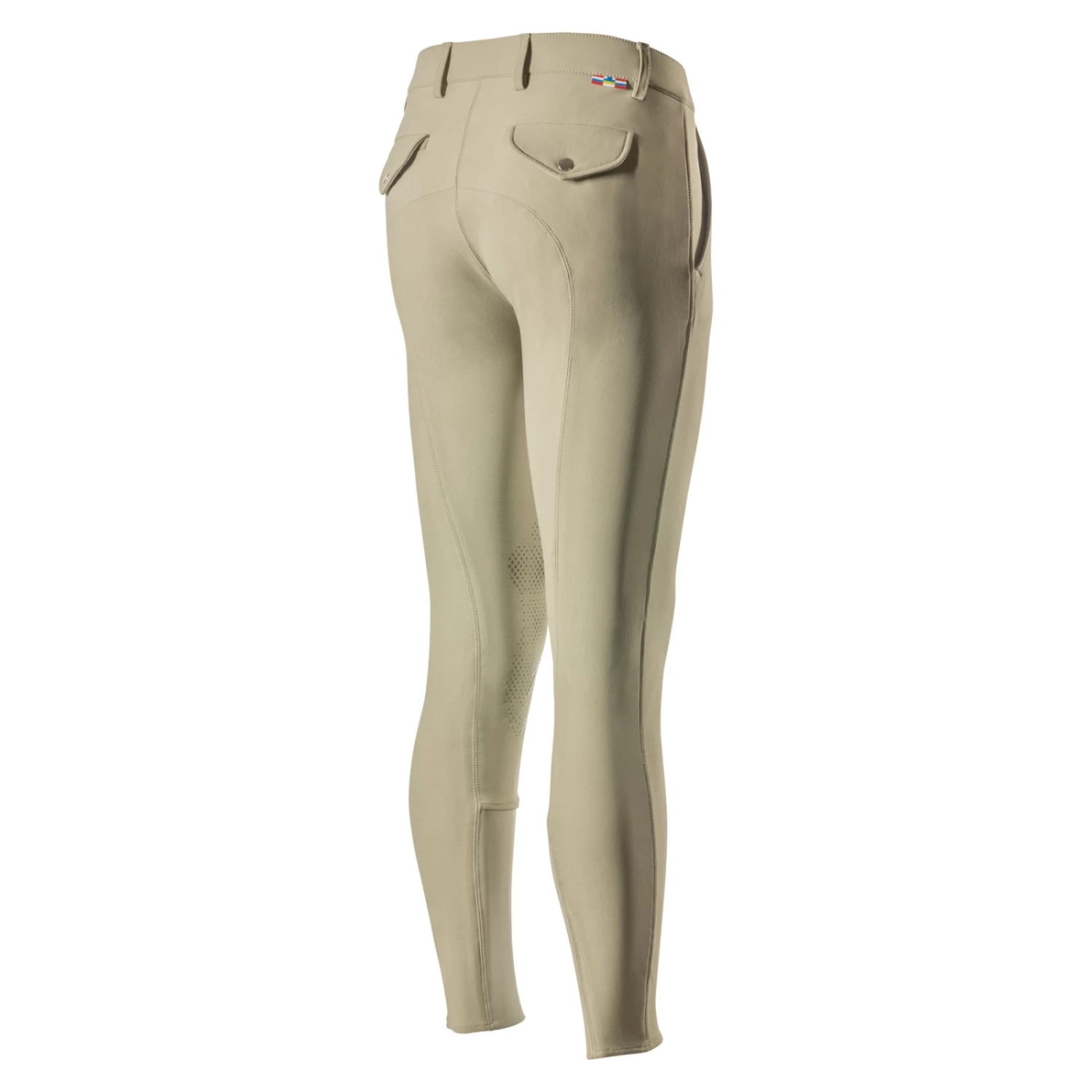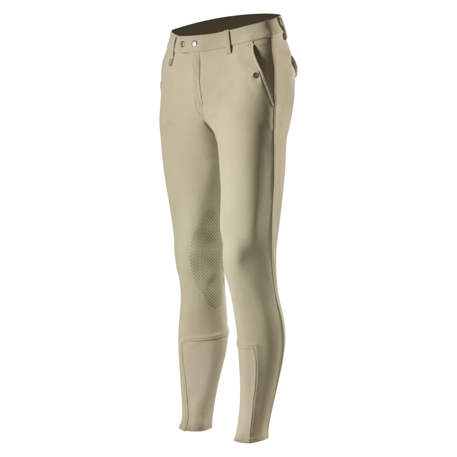 The Horze Men’s Grand Prix Knee Patch Breeches with Silicone Grip features a smooth front style without pleats. These new Grand Prix breeches are designed with a contoured waistband for an improved fit. A high quality silicone print on the knee area provides a solid grip with a reptile-like pebble pattern for added fashion and style. The elastic leg bottoms allow for a smooth and comfortable fit on the lower leg when wearing tight-fitting tall boots. The Men’s Grand Prix Knee Patch Breeches with Silicone Grip are made from a new functional, breathable fabric with a water and dirt repellent surface!