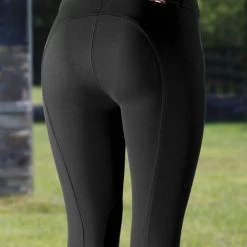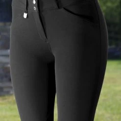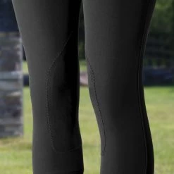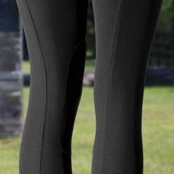 Made from comfortable stretch fabric, these breeches offer a traditional, elegant style that’s perfect for the ring. The simple leather-like knee patch adds good grip and a polished look to these popular breeches. The lower leg area actually stays in place under your boots and the elastic is comfortable without feeling bulky. The rear silhouette of these breeches is clean without the interruption of back pockets. Pick up a few pairs of these and always have a nice, fresh pair in the closet to put on for your next ride. The Women’s Grand Prix Knee Patch Breeches, by Horze, feature water, and dirt repellent material, along with UV protected (UPF 50+) fabric to keep you looking and feeling great.