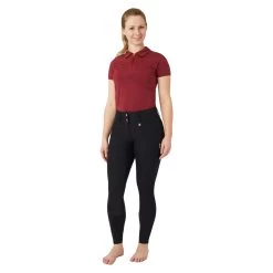 The Grand Prix Pro is an upgrade of the Horze Grand Prix breeches. The improved fabric is highly comfortable with its soft feel and quick drying characteric. The high waist cut with shaped waist provides extra stability and comfort. An optimum of stability is also achieved thanks to the strategically placed grip, which is slightly denser at the knees, where most of the grip is needed. Deep front pockets have enough room for stowing away your phone. Belt loops allow for the combination with a belt of your choice.