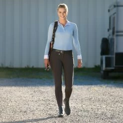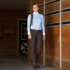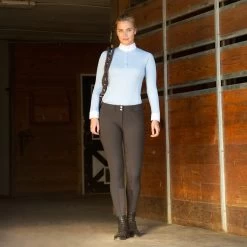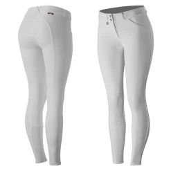 The Horze Women’s Grand Prix Full Seat Breeches with Silicone Grip are great breeches whether you’re riding in a clinic, weekly lesson, or a show jumper arena. These new and improved classic breeches will add a professional touch to your look. The Grand Prix style is a trusted choice of top athletes and for equestrians of all disciplines. The cut is elegant, formal, and timeless. The silicone full seat provides great grip for added security in the saddle. A comfortable, contoured medium waistband adds to the whole package and you will choose these breeches when you want to look and feel your best. The Women’s Grand Prix Silicone Grip Full Seat Breeches, by Horze, are made from a new functional, breathable fabric that has a water and dirt repellent surface. Dust and grime won’t stick to these ultimate show breeches. These stylish and functional riding pants include UV-protected fabric (UPF 50+).