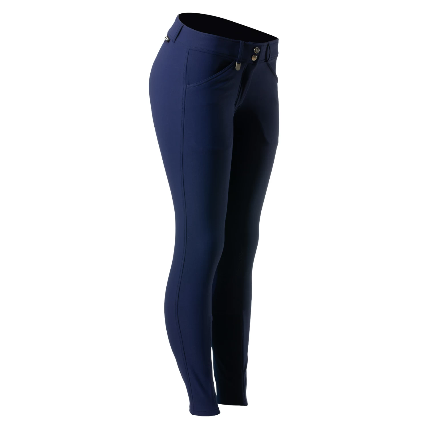The Horze Women’s Grand Prix Knee Patch Breeches with Silicone Patches are Horze’s most popular, classic knee patch breeches that have been improved to offer even more benefits to riders of all disciplines and abilities. Approved by top professional athletes, these breeches are both traditional and formal. A contrasting knee patch silicone grip gives practical purpose to these sharp looking simple breeches. Slant front pockets, a wide waistband, and a smooth back are nice touches. You will look crisp and clean all day in this classic cut. The timeless Women’s Grand Prix Knee Patch Breeches, by Horze, now have a new silicone surprise at the knee. In addition, the water- and dirt- repellent fabric includes UV protection (UPF 50+).