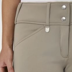 The Horze Women’s Grand Prix Thermo Softshell Full Seat Breeches will be your favorite cold weather riding breech. These new and improved Grand Prix-styled riding pants are water repellent and designed with a full silicone seat for great grip in the saddle. These fleece-lined wide waist breeches provide that extra layer of warmth you need for winter riding. The stretchable, breathable soft-shell fabric repels hay and horse hair so you will always look neat and clean. The full seat allows plenty of freedom of movement and the elastic leg bottoms provide a smooth fit under tight boots or chaps. Horze’s Grand Prix Thermo Softshell Breeches include a comfortable wide waistband and front zipper. Two front pockets are also designed.