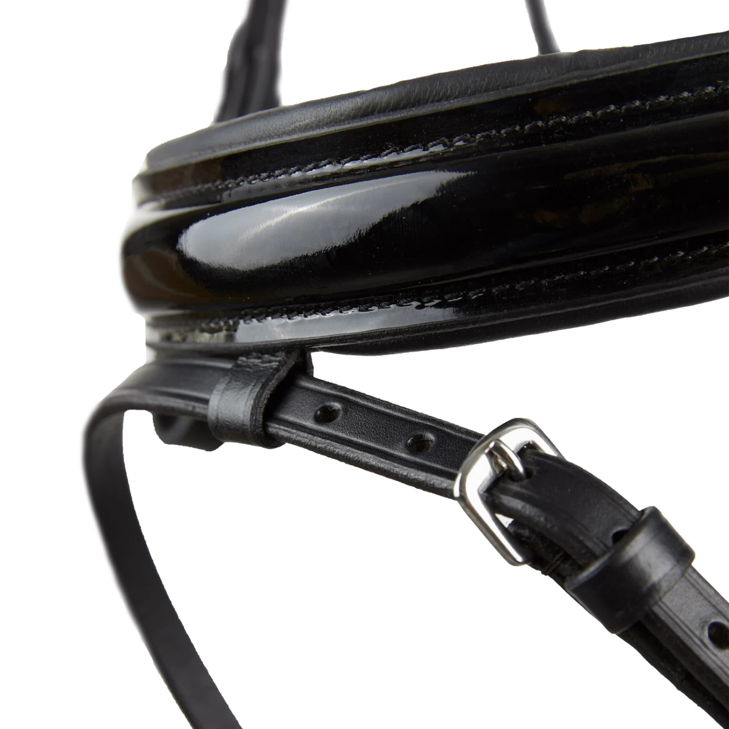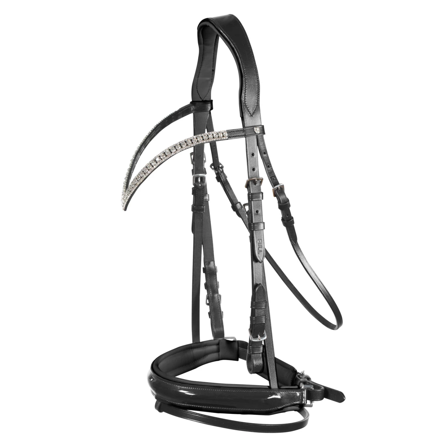 - Classic snaffle dressage bridle for horseback riding. Reins not included