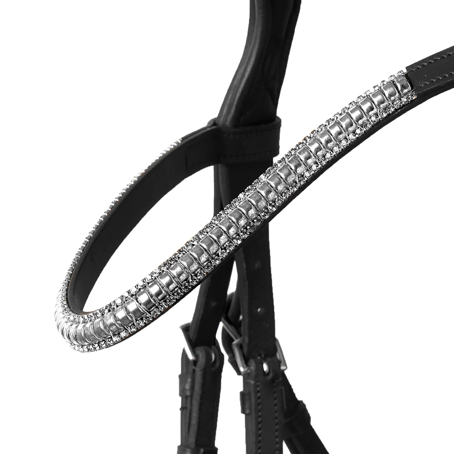 - Anatomic browband with crystals and snap buttons