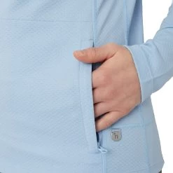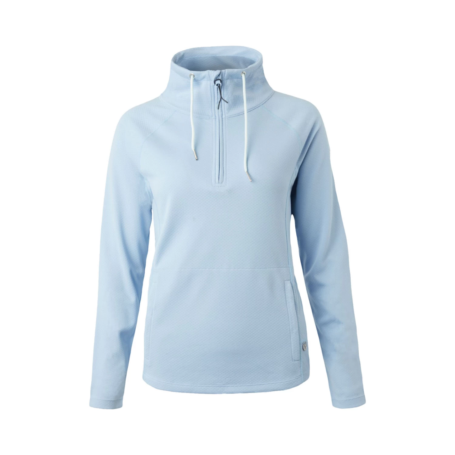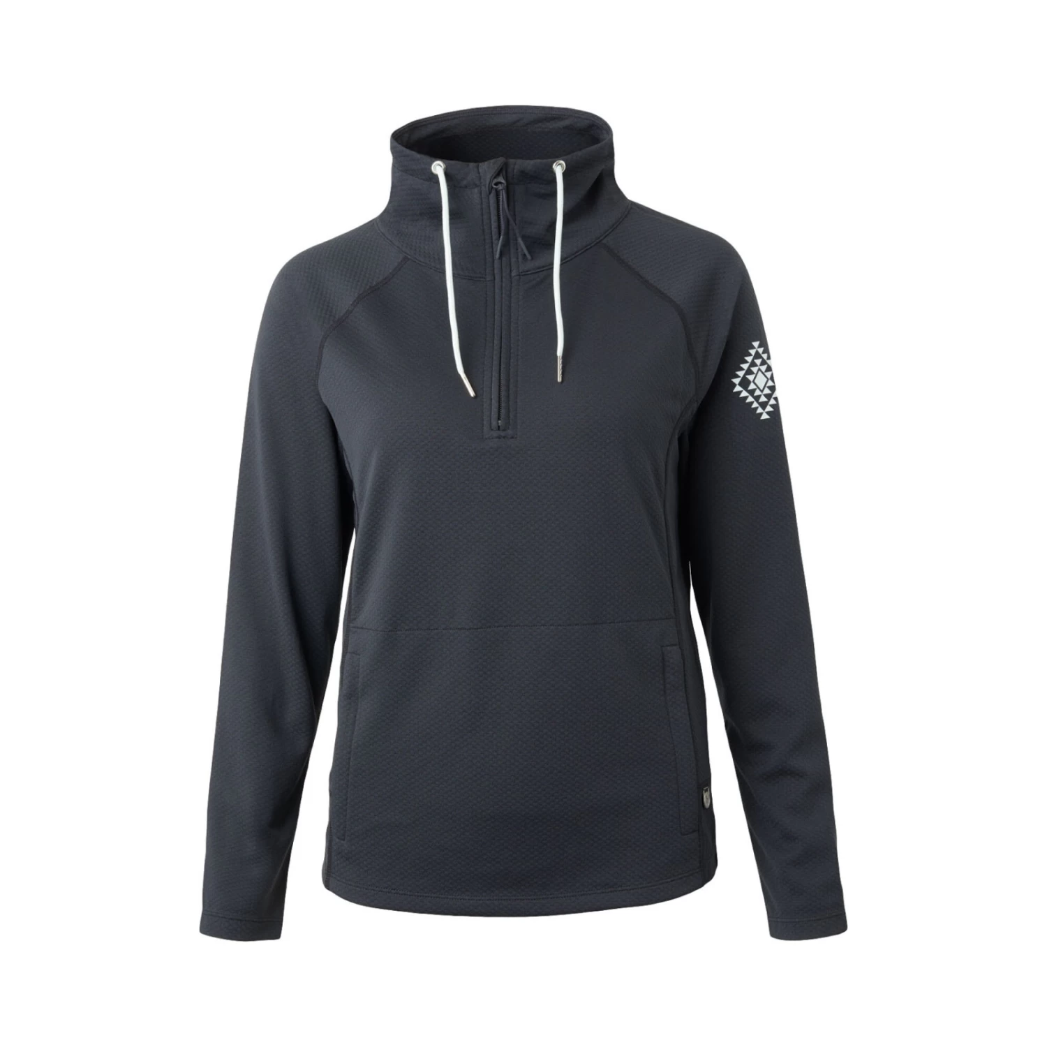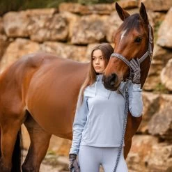 This functional half zip sweatshirt is perfect for spring days thanks to its breathable & lightweight fabric. The stand-up collar keeps off wind and is decorated with hood strings. The left sleeve is adorned with a small Aztec print with Horze logo.