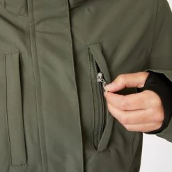 A stylish design with a tapered, fitted waist gives this women’s jacket a nice, custom look. The pockets hold everything from horse treats to car keys and cell phones. The Horze emblem on the shoulder and fine details such as press buttons and strong nylon zippers make this quality jacket durable and functional as well as beautiful. The fabric is breathable and waterproof and will protect you from warm summer showers. The back slit will help cover the saddle and allow plenty of freedom of movement. The sophisticated colors match with many items in the seasonal collection.