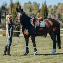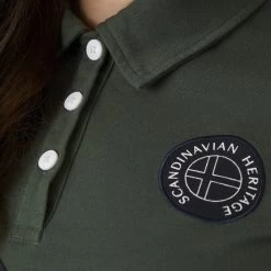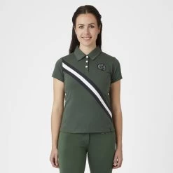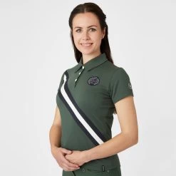 The Horze Jessie t-shirt is made from breathable material that is perfect for your daily rides. The sporty design with collar and contrasting stripe easily matches your riding wardrobe. Press buttons at the placket provide additional ventilation when needed. The embroidery on the chest looks timeless and chic. Wear this jersey shirt riding, in the stables or in your free time. It can easily be combined with breeches, tights or jeans.