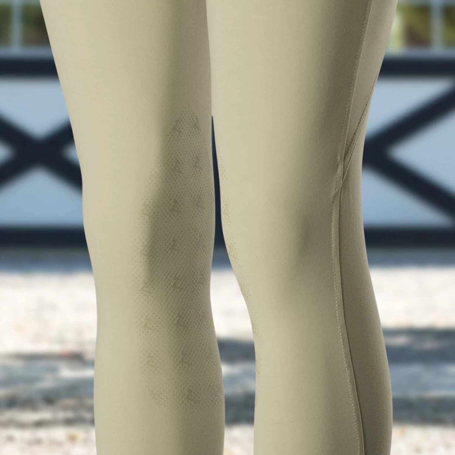 The Juliet HyPer Flex Knee Patch Tights by Horze offer the rider unlimited mobility and comfort in the irons so they can perform at their best. Ideal for daily schooling or casual rides, these trendy tights have the feel of your favorite yoga pants with a wide and comfortable waistband that won’t bind, bunch, or leave marks on your skin. Silicone knee patches provide a non-slip grip, no matter how wild the ride becomes, while the durable nylon blend fabric is stain resistant to take the rigors of a long day at the barn. Breathable, comfortable, and easy to care for, the Juliet is sure to be the tight you turn to for all your casual riding!