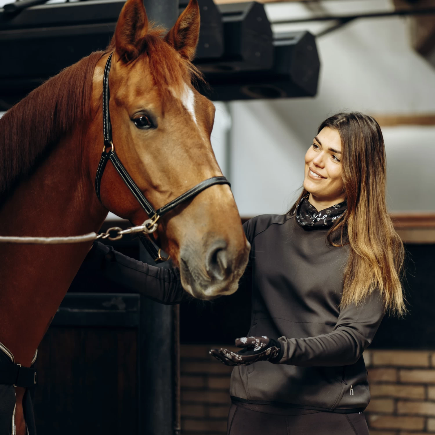 The Horze Kaitlin sweatshirt is made from breathable fabric. Two zipper pockets keep your hands warm and your belongings safe. The flower pattern on the collar adds a lovely detail. Combine the sweatshirt with our Horze Katiling Breeches for a full look!