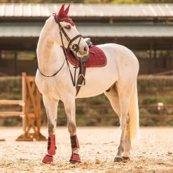 The anatomically cut Horze Kenya saddle pad is equipped with a silicone detail to prevent the saddle from slipping. Light padding beneath the saddle adds extra comfort. Moisture wicking lining keeps your horse’s back dry. Three rows of pipinig and the timeless design add a classic look. Metallic details make for an elegant look. Pair this saddle pad with the rest of our Horze Kenya range for a full outfit.