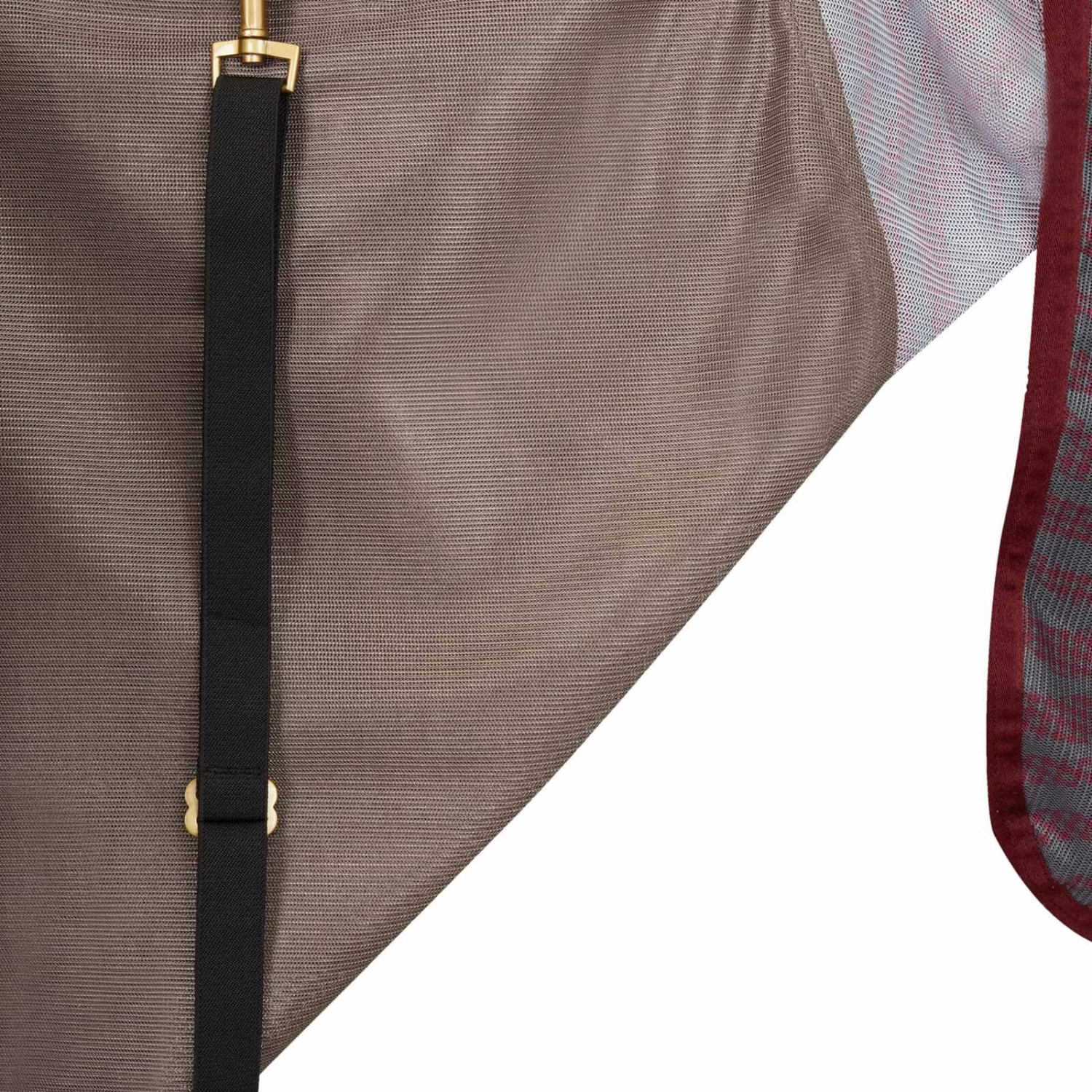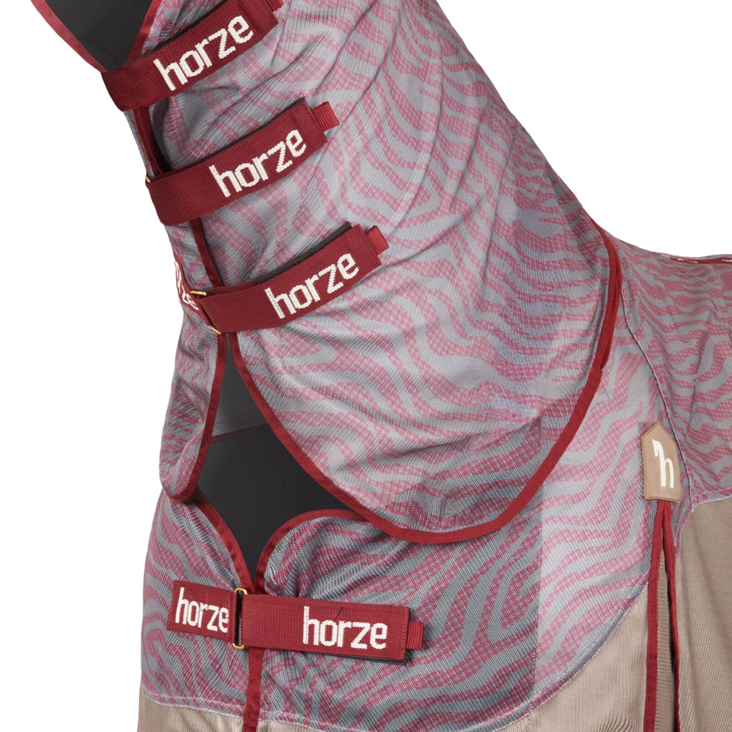 Our lightweight Horze Kenya fly sheet is made from breathable mesh in a unique pattern. The high neck adds extra protection and easily attaches to a halter. A fleece panel between neck and body makes sure your horse has enough freedom of movement. Lined shoulders and mane area prevent rubbing. The longer tail flap provides additional protection. Hook-and-loop closures and high gussets keep the sheet in place. Also check out the rest of our Horze Kenya range for a full look.