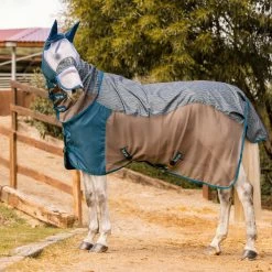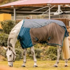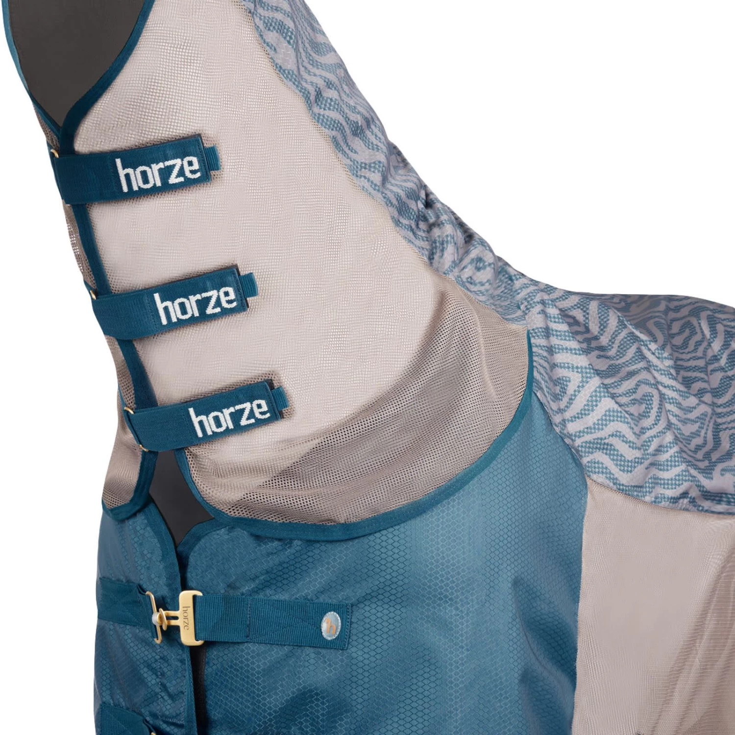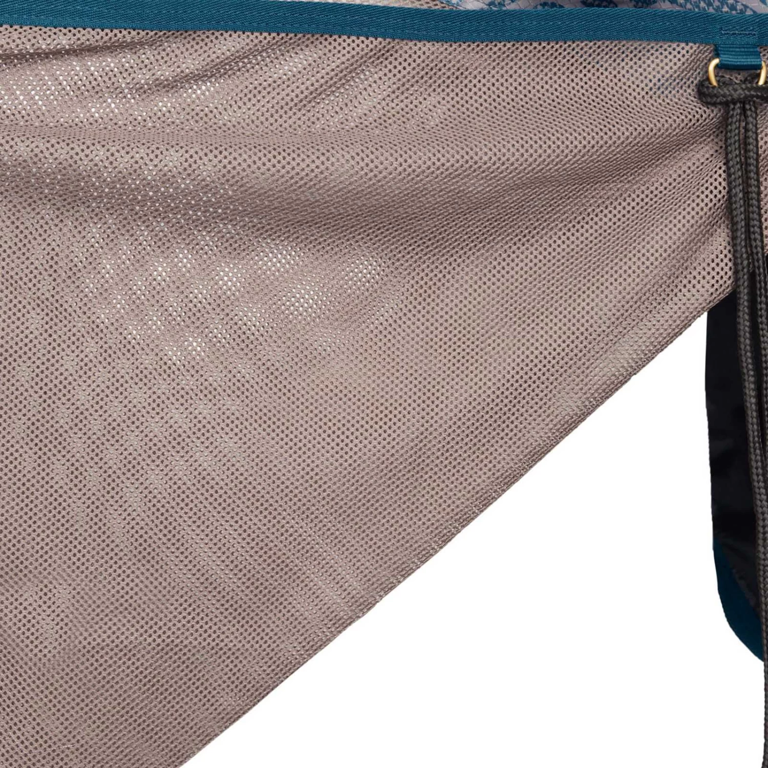 Our Horze Kenya turnout is waterproof at the top and breathable on the sides. It keeps your horse dry and comfortable. The unique pattern looks stunning. Shoulder lining prevents rubbing. The hood can easily be attached with d-rings, and closes safely. Two front buckles, x-surcingles and leg straps keep the turnout in place. Pair this turnout with the rest of our Horze Kenya range for a full look!