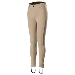 - Elastane Blended For Stretch: The elastane blended into the fabric makes these breeches a little bit stretchy. Together with the soft cotton, these breeches are sure to be your rider’s new favorite breeches! The elastic straps under the foot ensure a hassle-free fit into jodhpur or tall boots without bunching.