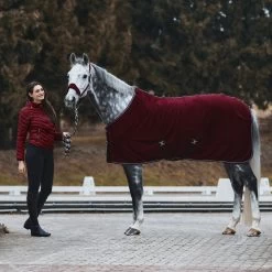 The Horze Kiel rug is made from soft fleece and designed in stunning seasonal colors. The material keeps your horse dry and quickly absorbs any moisture. A double front closure with buckles and hook-and-loop fasteners, as well as X-surcingles and a tail cord, keep the rug in place. Pretty piping along the trim matches the colors of the rug perfectly. Combine it with the Horze Kiel halter (#22301) and Horze Kiel lead (#22741) for a full look!