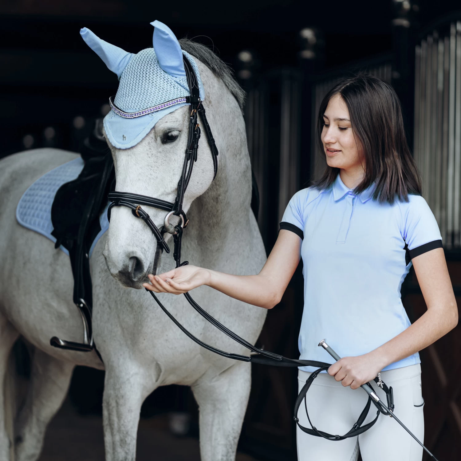 The Horze Laura shirt is perfect for active days: In your daily training, time in the stables and on summer rides. Mesh fabric on the armpits keeps you cool, and the firm fabric feels soft on your skin. Summery colors are easy to incorporate into your seasonal wardrobe. The classic cut is sporty and timeless. A metallic logo at the back adds an eye catching detail.