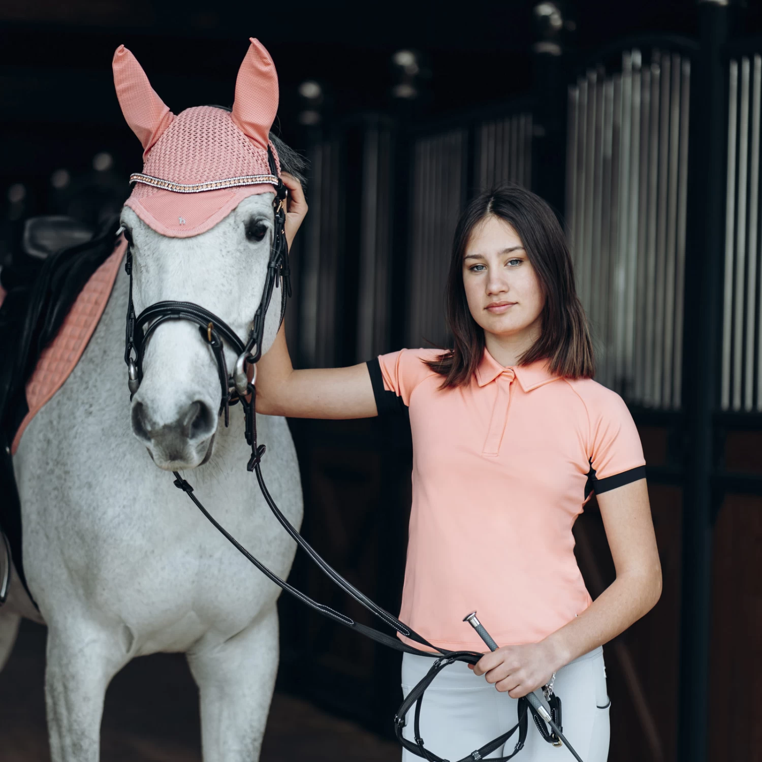 The Horze Laura shirt is perfect for active days: In your daily training, time in the stables and on summer rides. Mesh fabric on the armpits keeps you cool, and the firm fabric feels soft on your skin. Summery colors are easy to incorporate into your seasonal wardrobe. The classic cut is sporty and timeless. A metallic logo at the back adds an eye catching detail.