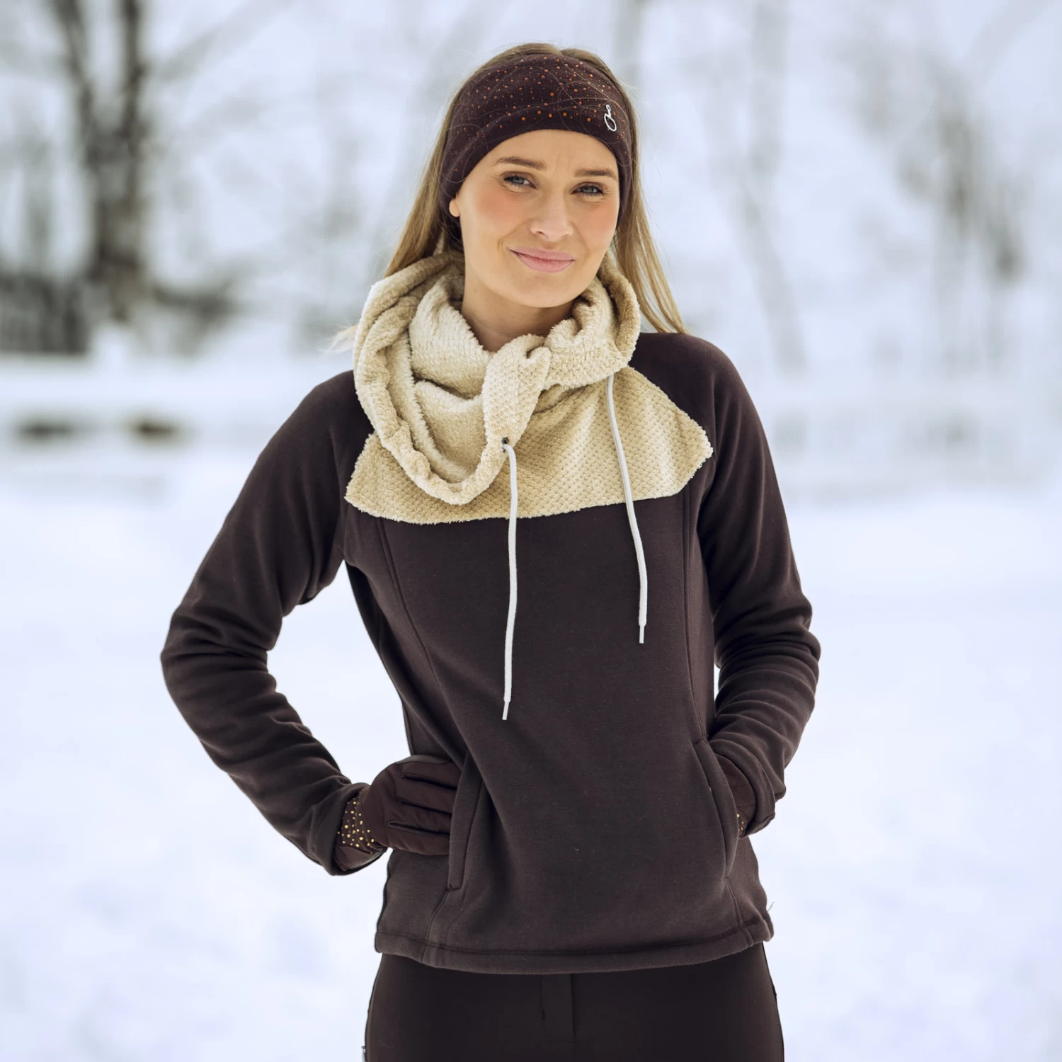 The new Horze Leanne hoodie will keep you warm and cozy. The elastic fleece material gives flexiblity. The collar can be worn high, but also as a hood, making this sweatshirt super versatile. Zipper pockets at the front keep your belongings safe while riding. Wear it for training, in the stable or in your free time.