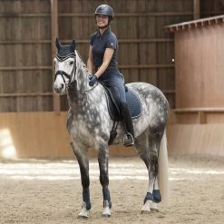 The Horze Lia polo shirt is made from soft organic cotton that is not only super comfortable for your daily training, but also sustainable. Elastic material adapts to your movements perfectly, and timeless colors match your riding wardrobe. The chic rose gold zipper can be adjusted for a cooling feeling. Pair this shirt with your favorite breeches.