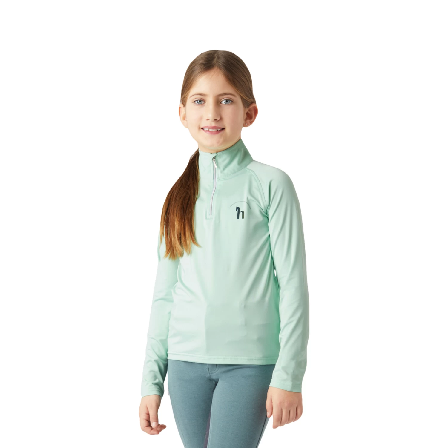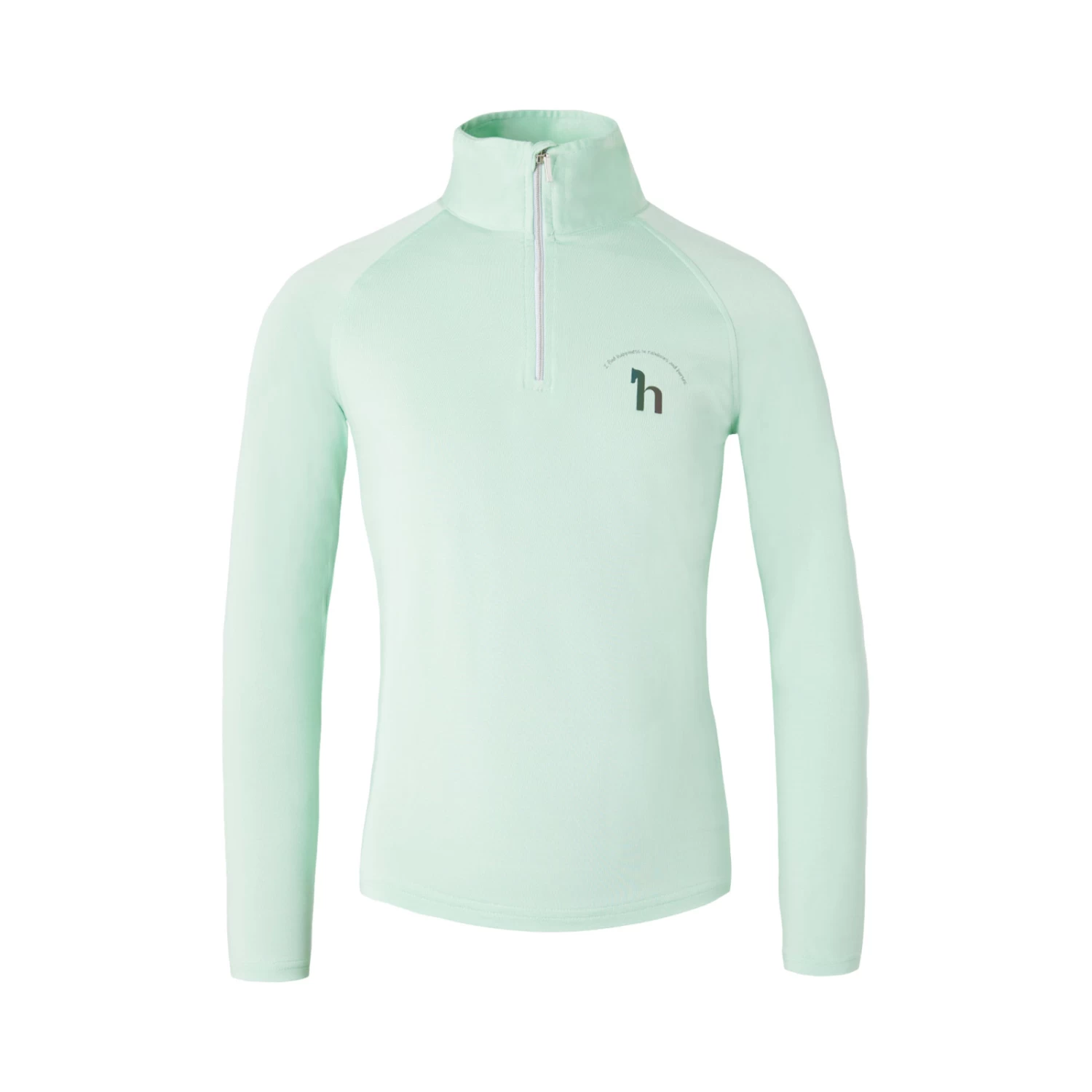 Pastel colored half zip baselayer with holographic logo print on the chest.
