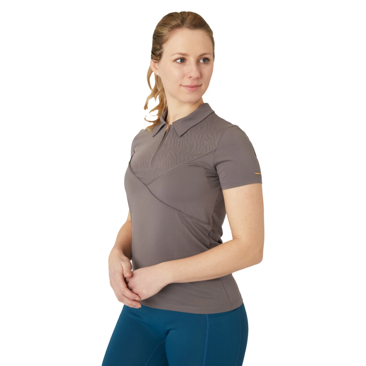 This timeless polo is jazzed up by the all-over heatprint at the back and top front. The heatprint features a safari pattern matching the rest of the collection. The front piping across the chest creates a flattering figure. The half zip adds a sportive style and facilitates on and off.