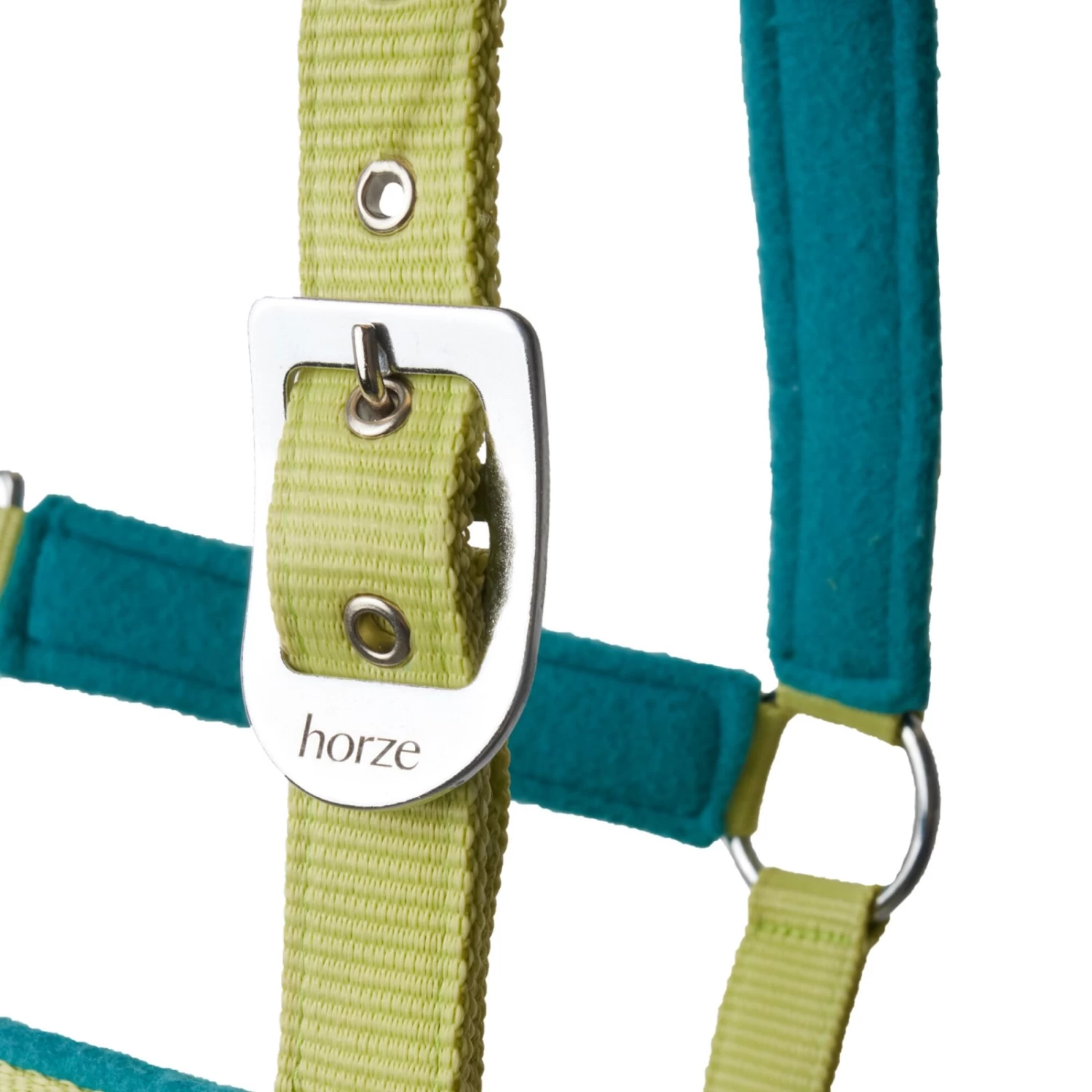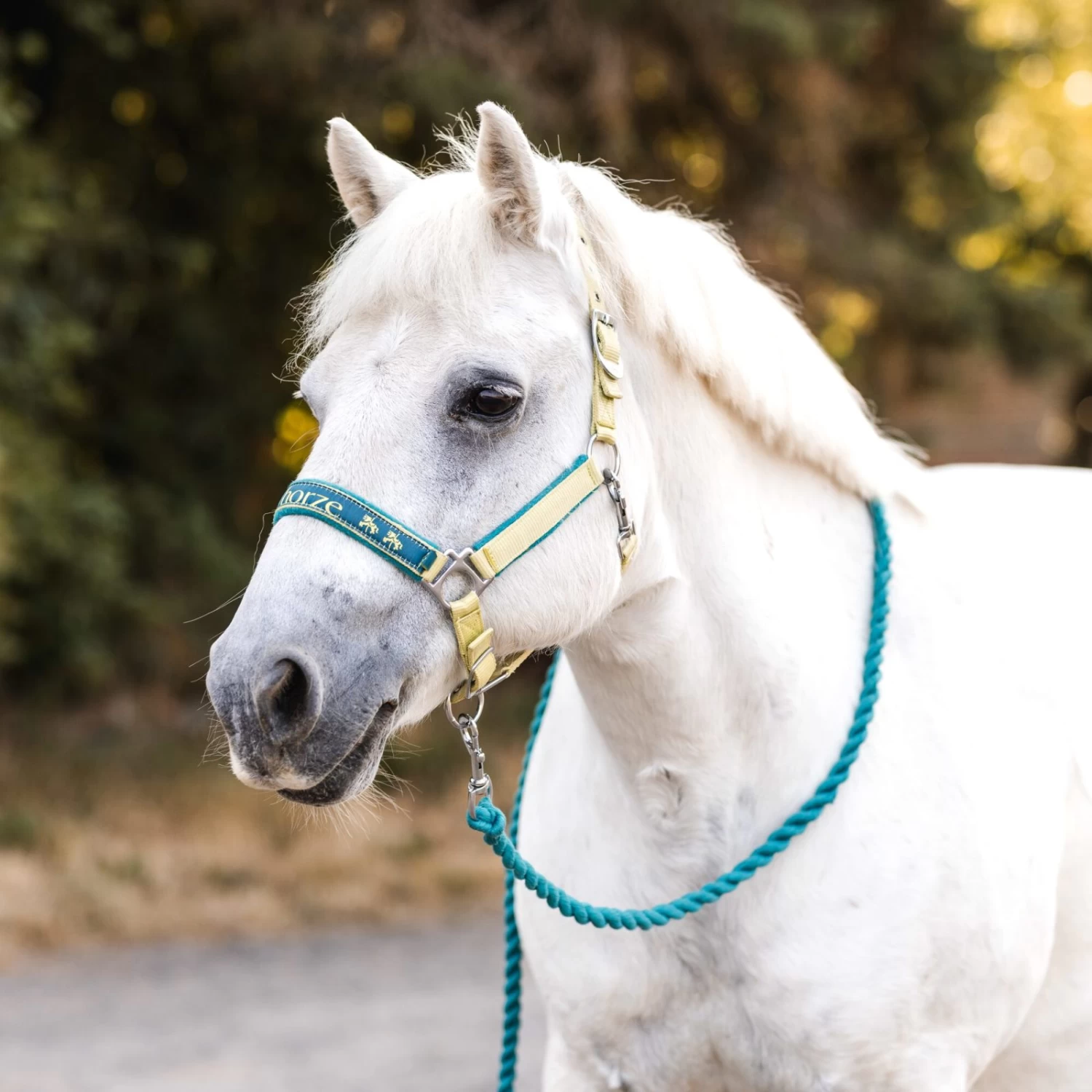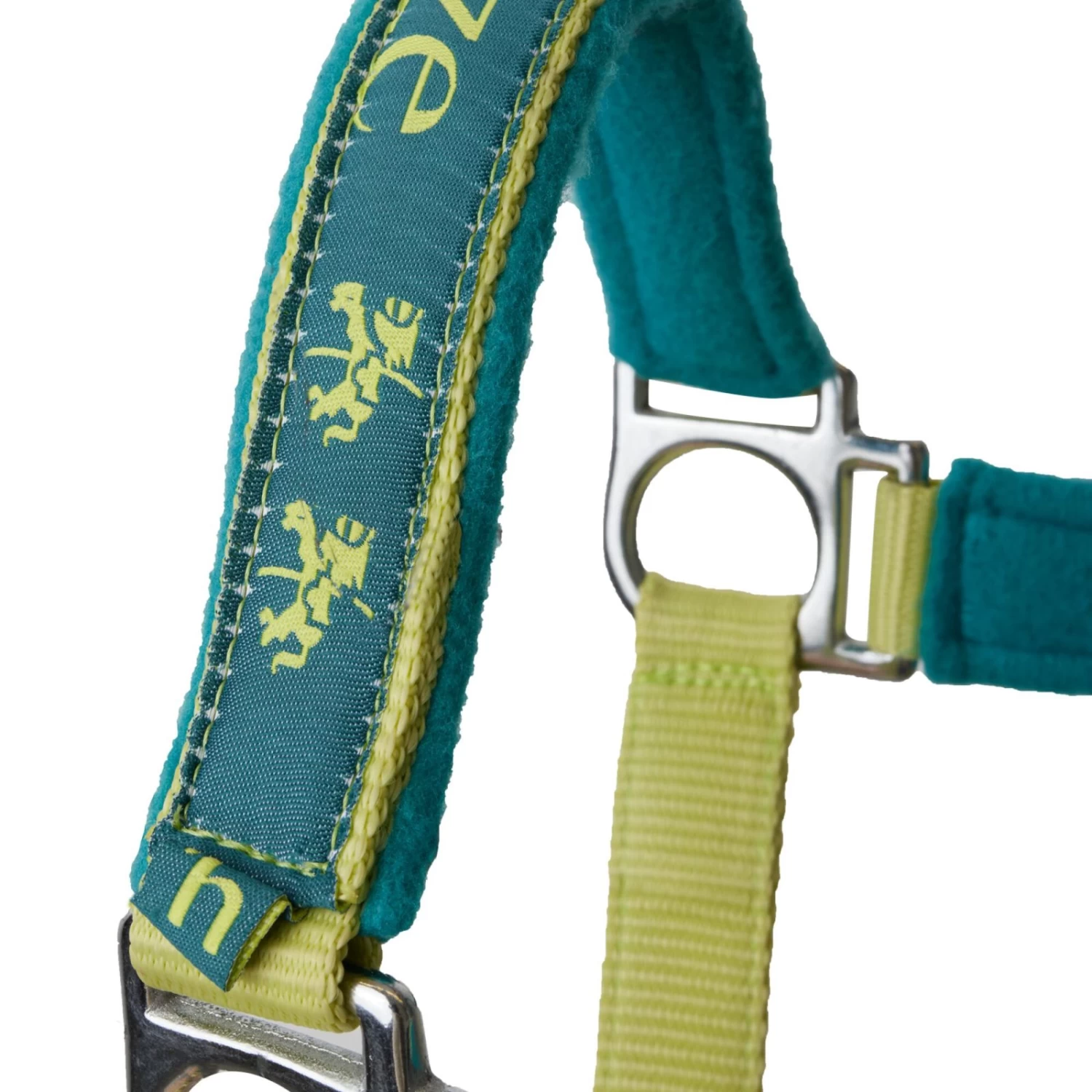 Halter in pony size matching the Magic Carousel collection with soft fleece lining at neck, nose and cheeks to avoid chafing. Rolled throat strap and clip opener for more comfort. Adjustable at nose and neck for a perfect fit. The noseband features a logo tape with Magical Carousel feature.
