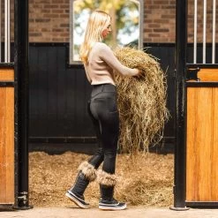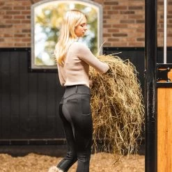 These breeches are designed with a fabric brushed inside, providing exceptional warmth and comfort during colder rides. The water repellent outer layer helps keep you dry in light rain or snow. The high waist and wide waistband offer a flattering fit and extra support. Belt loops allow for the option of adding your favorite belt. Convenient thigh phone pockets provide storage for your essentials. The silicone full grip seat ensures optimal grip and stability in the saddle.
