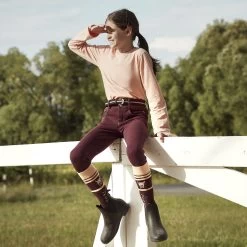The Horze Morgan knee patch breeches for kids are made with grippy silicone that provides flexibility in the saddle. The elastic material is comfortable and stays in place. Two front pockets provides space for small treasures like treats. The Morgan design at the back brings fun to little riders’ wardrobes. Combine these breeches with the rest of our Horze Morgan range for a full outfit!