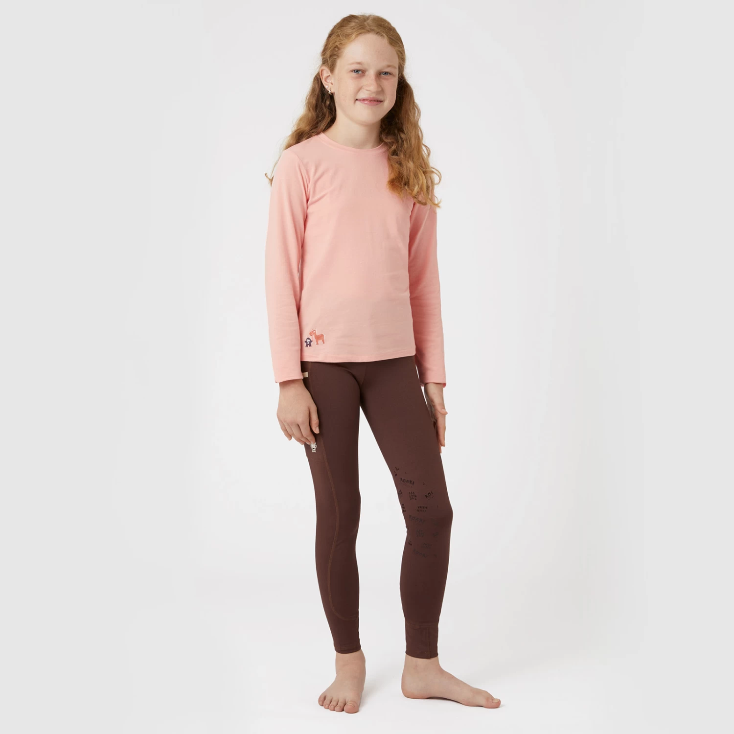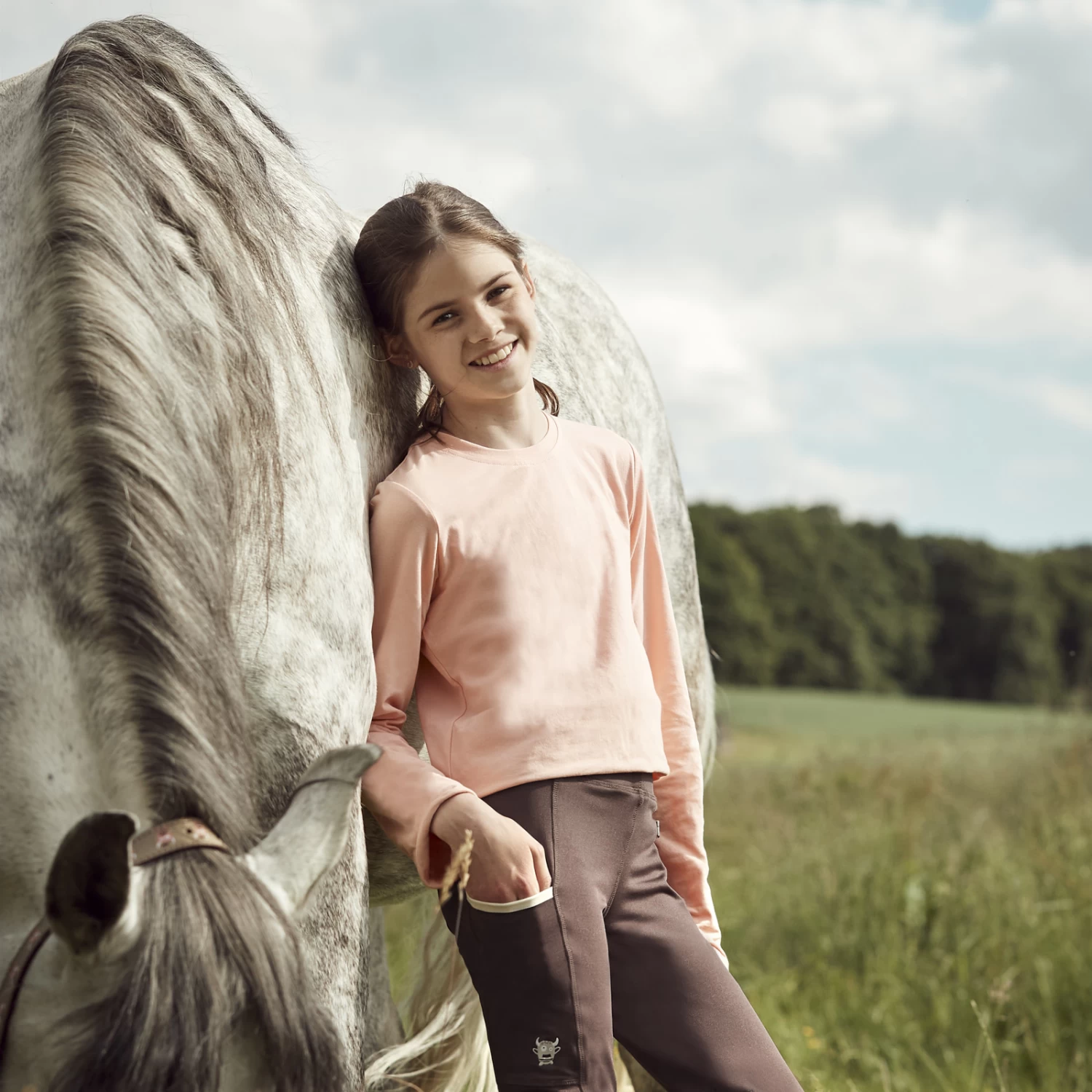 The Horze Morgan long sleeve shirt for kids is made from super soft material. The easy fit is comfortable for riding or every day. Pretty colors and the Morgan design adds fun to little riders’ wardrobes. Pair this shirt with the rest of our Horze Morgan range for a full outfit!