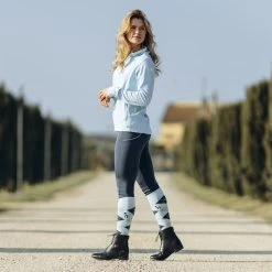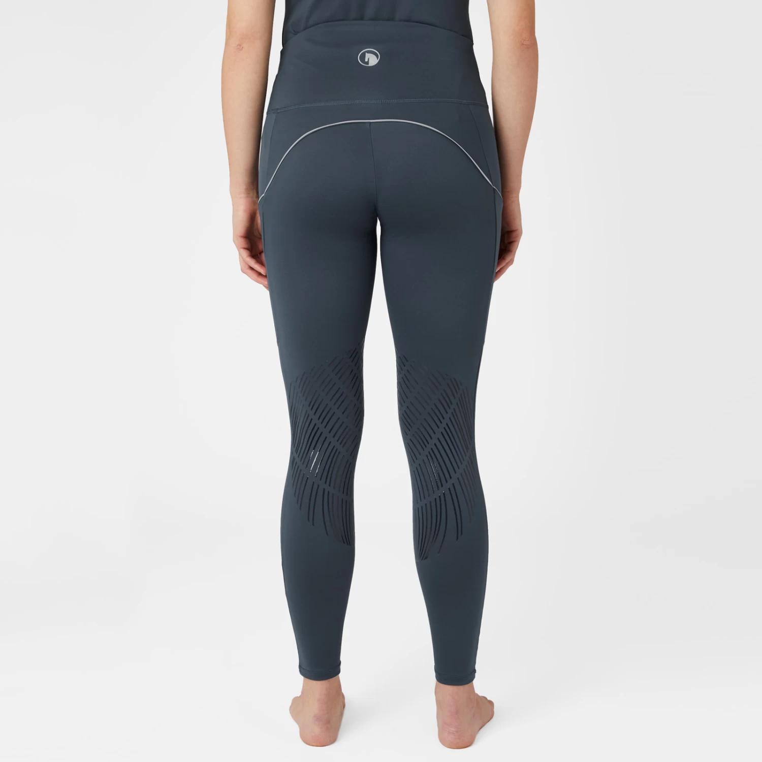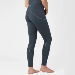The Horze Nicki riding tights are made from breathable functional fabric, and designed in a sporty style. The waist is cut higher in the back for extra support. Mobile pockets keep your phone safe. The silicone knee patch provides flexibility in the saddle. Piping around the back adds a flattering shape.