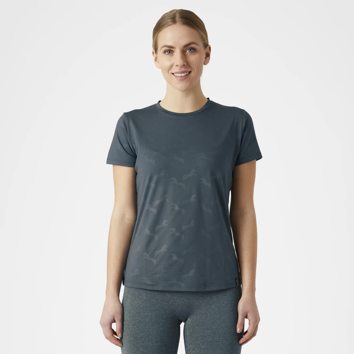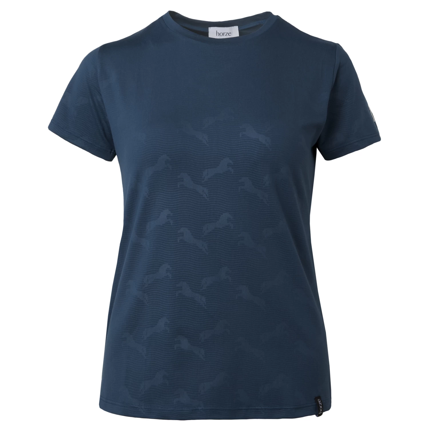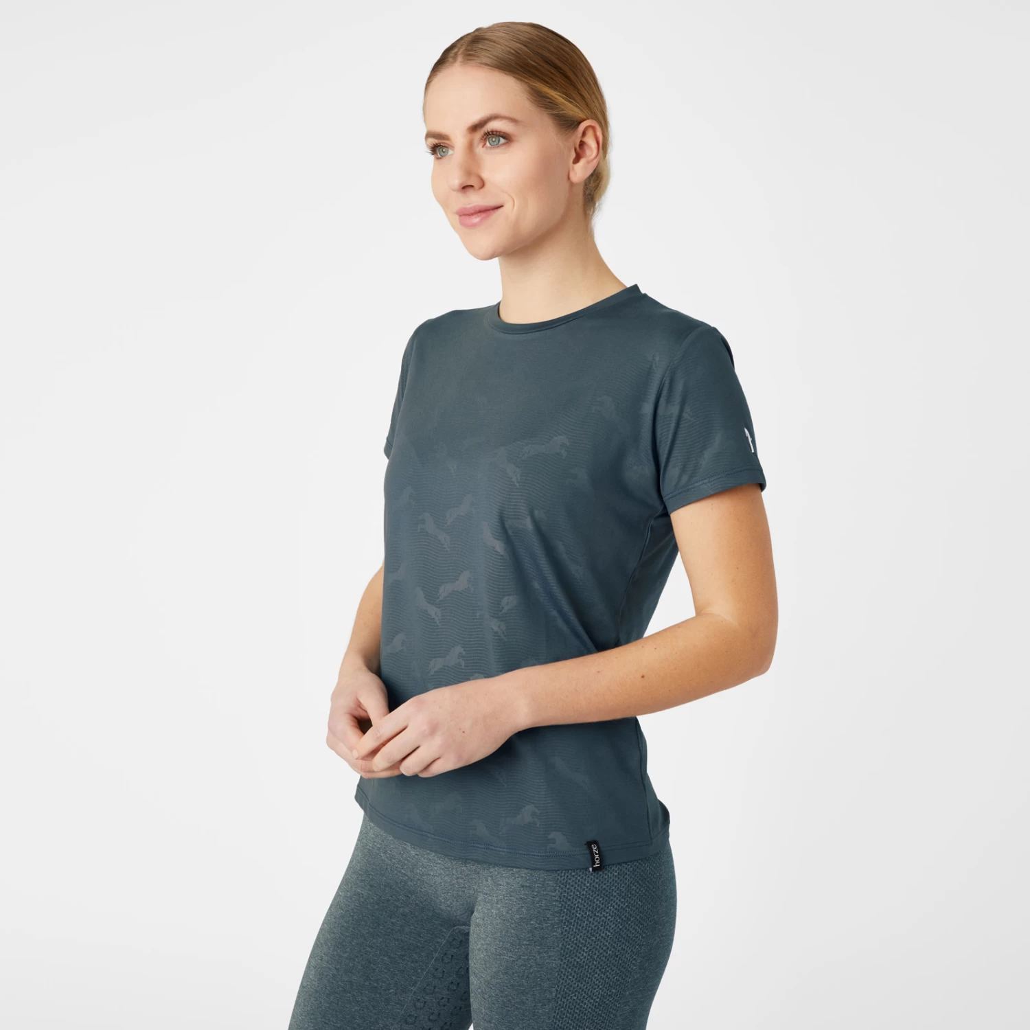 The Horze Nina shirt will become your new favorite every day shirt in no time. Soft, breathable material keeps you comfortable. The allover print shows your love for riding. Stylish colors fit into your riding wardrobe perfectly, and can easily be paired with your favorite breeches or riding tights.