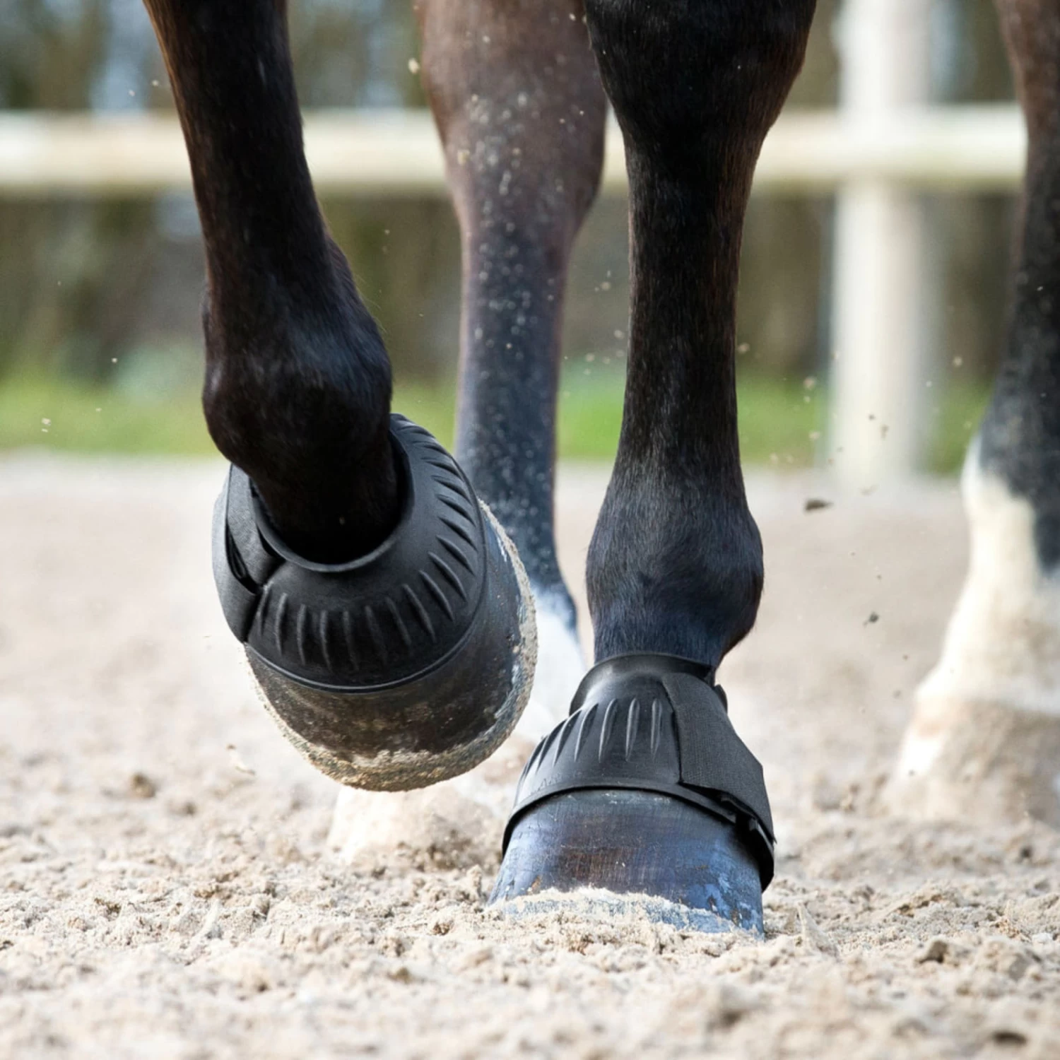 These sturdy, rubber boots won’t twist or rotate around the hoof, while they protect your horse’s hoof from over strikes and overreaching. The hook and loop closure allows you place the boot on the hoof without having to wrestle.