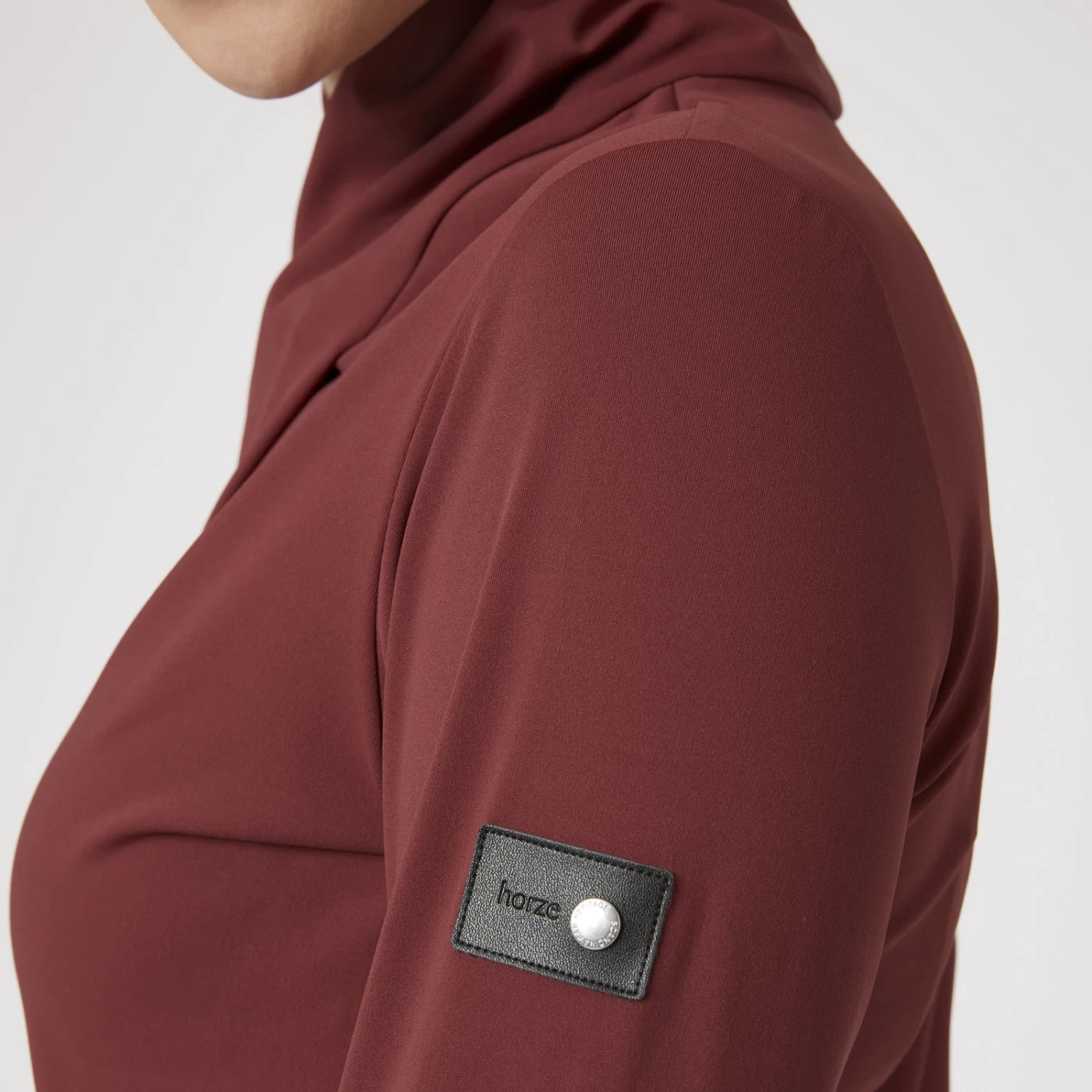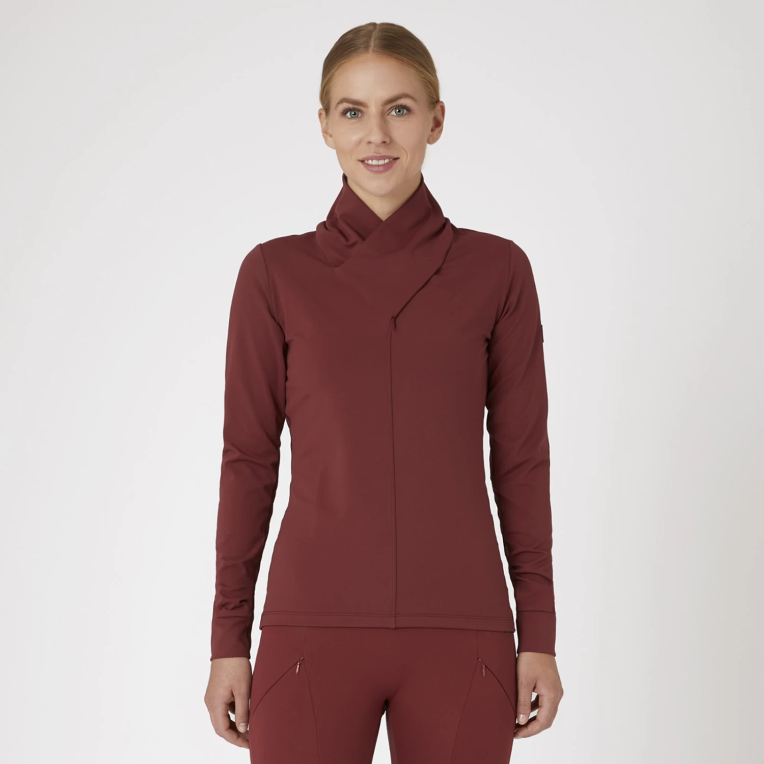 Our Raquel training shirt is made from super soft and breathable material. Comfortable stretch gives you the freedom of movement that you need while riding. It is perfect for wearing with a padded vest in autumn or under a jacket in winter. The crossed neck is a refined detail that will set you apart from everyone else, and it also keeps you warm in chilly weather.