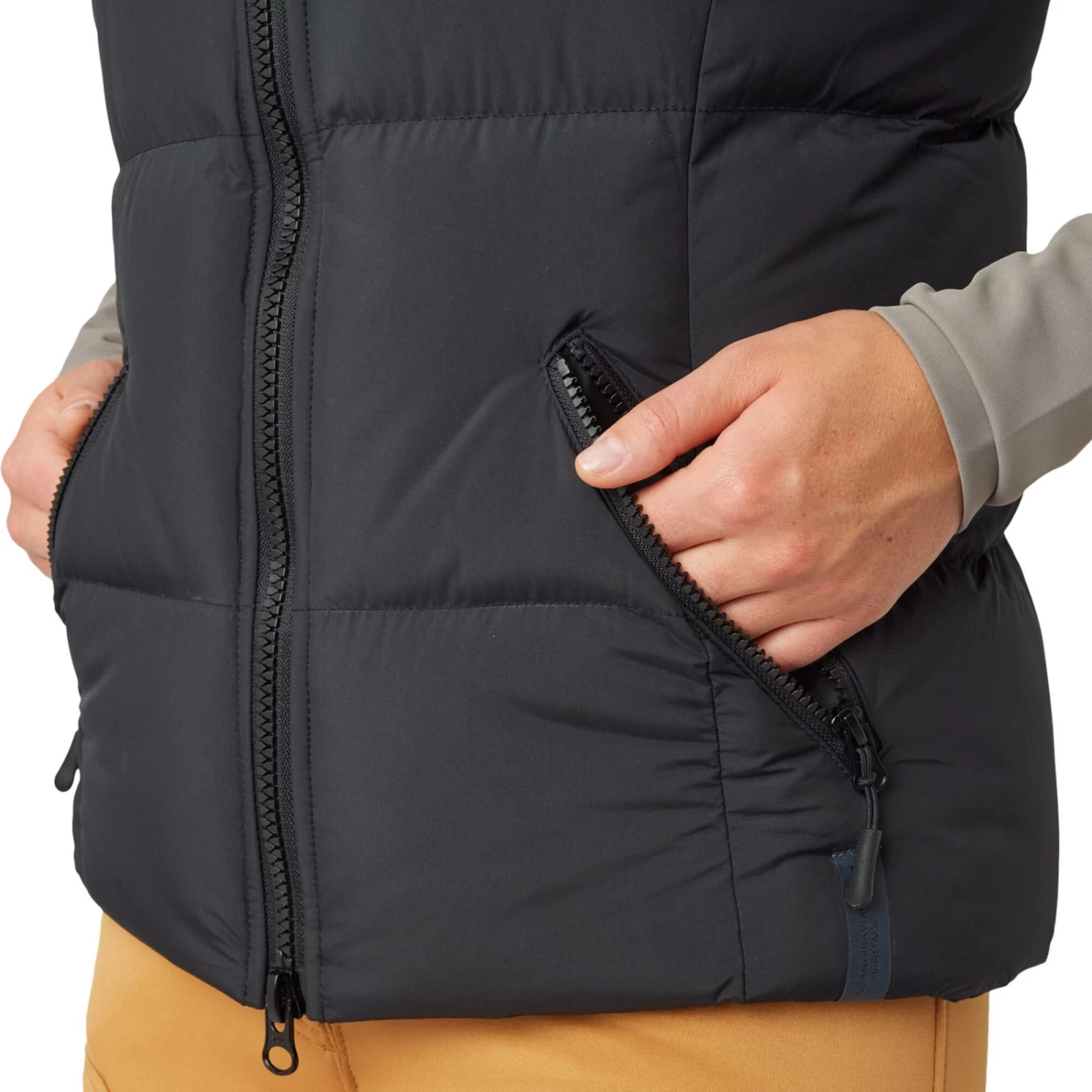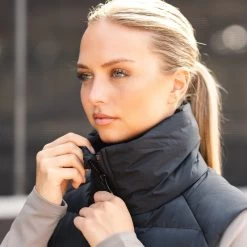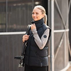With a smooth hand feel and a non-shiny appearance, this vest exudes a sophisticated look. The dirt repellent properties keep it looking clean and fresh. The stretch fleece back panel enhances mobility, allowing for comfortable movement. The vest features big size zippers and convenient front pockets for storing essentials. The large stand-up collar adds a touch of elegance and provides extra protection from wind.