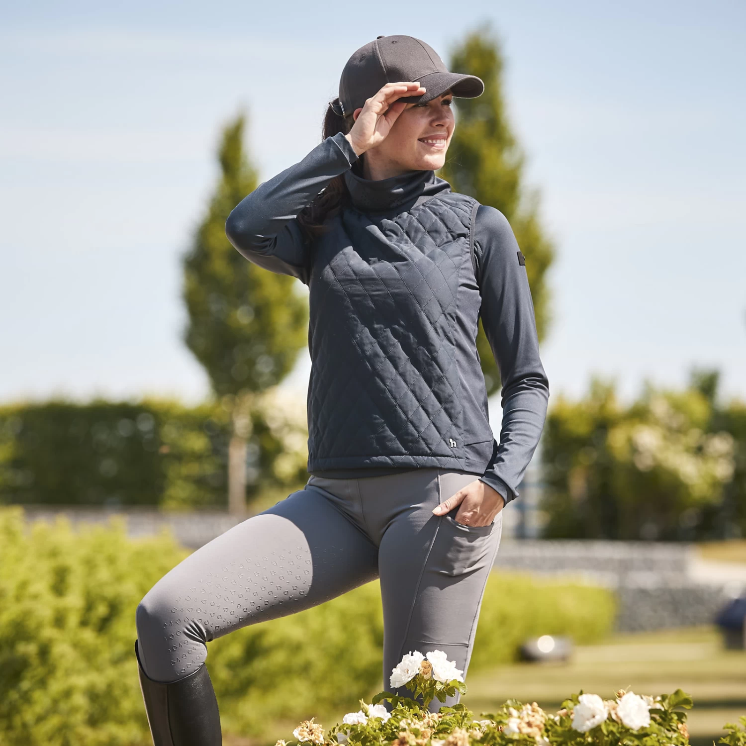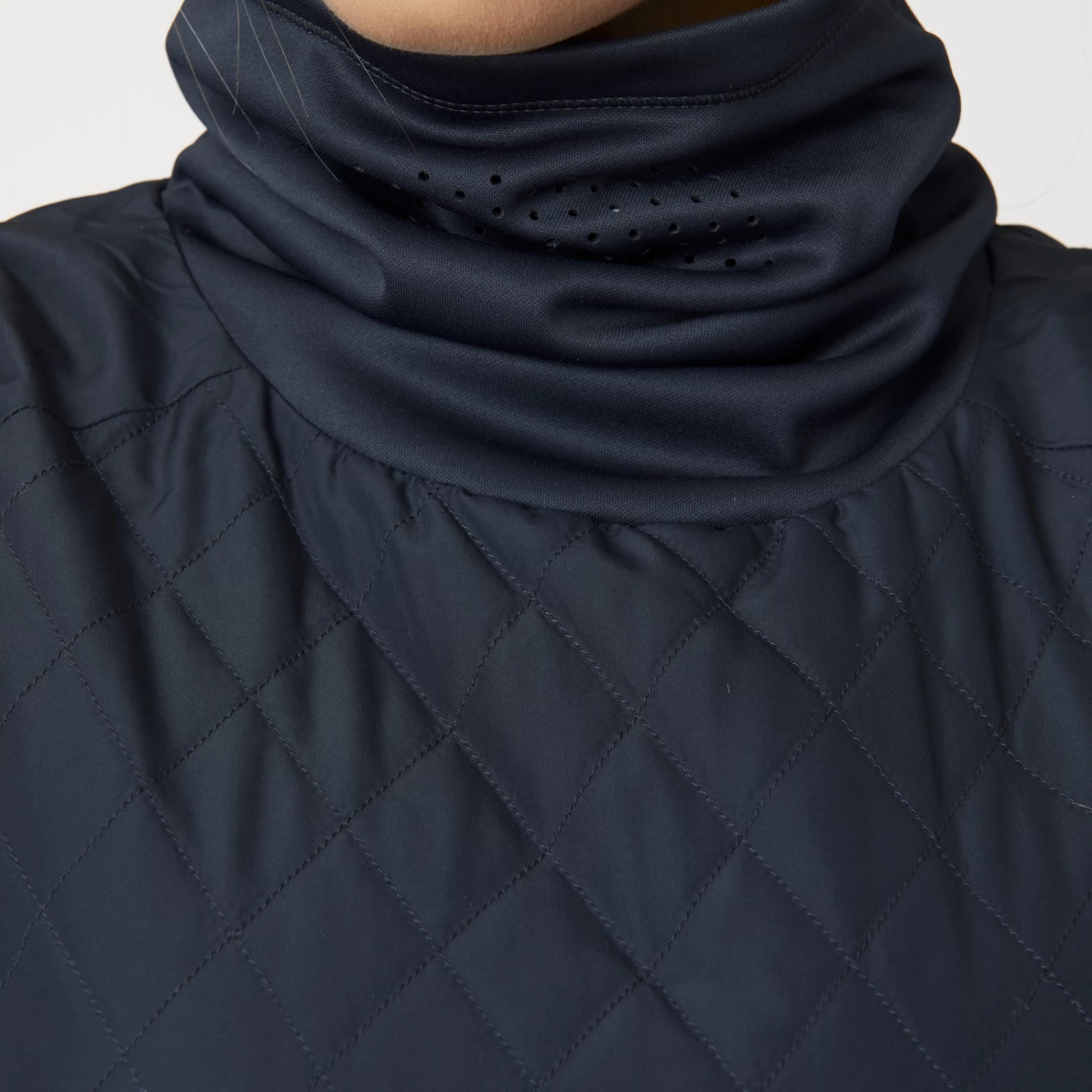 The Horze Riley hybrid riding vest is perfect for active riders. It is padded in the front and on the shoulders, and the sides and back are elastic and water repellent. Side zippers offer easy access. The high collar keeps neck and chin warm, with air holes for breathability. A zipper pocket on the back provides space for your phone. Elastic armholes keep you comfortable.