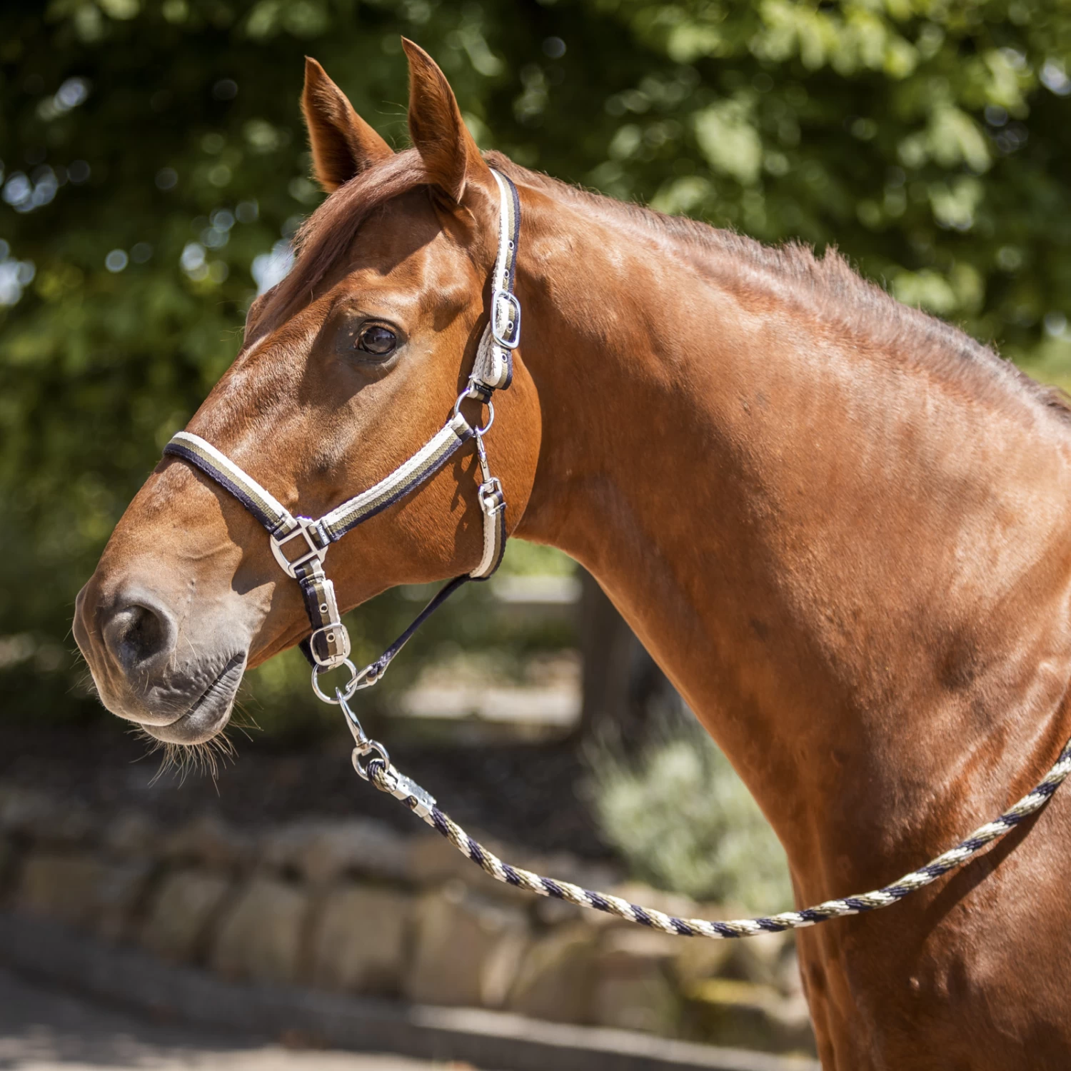 - Halter and lead with strong snap hook