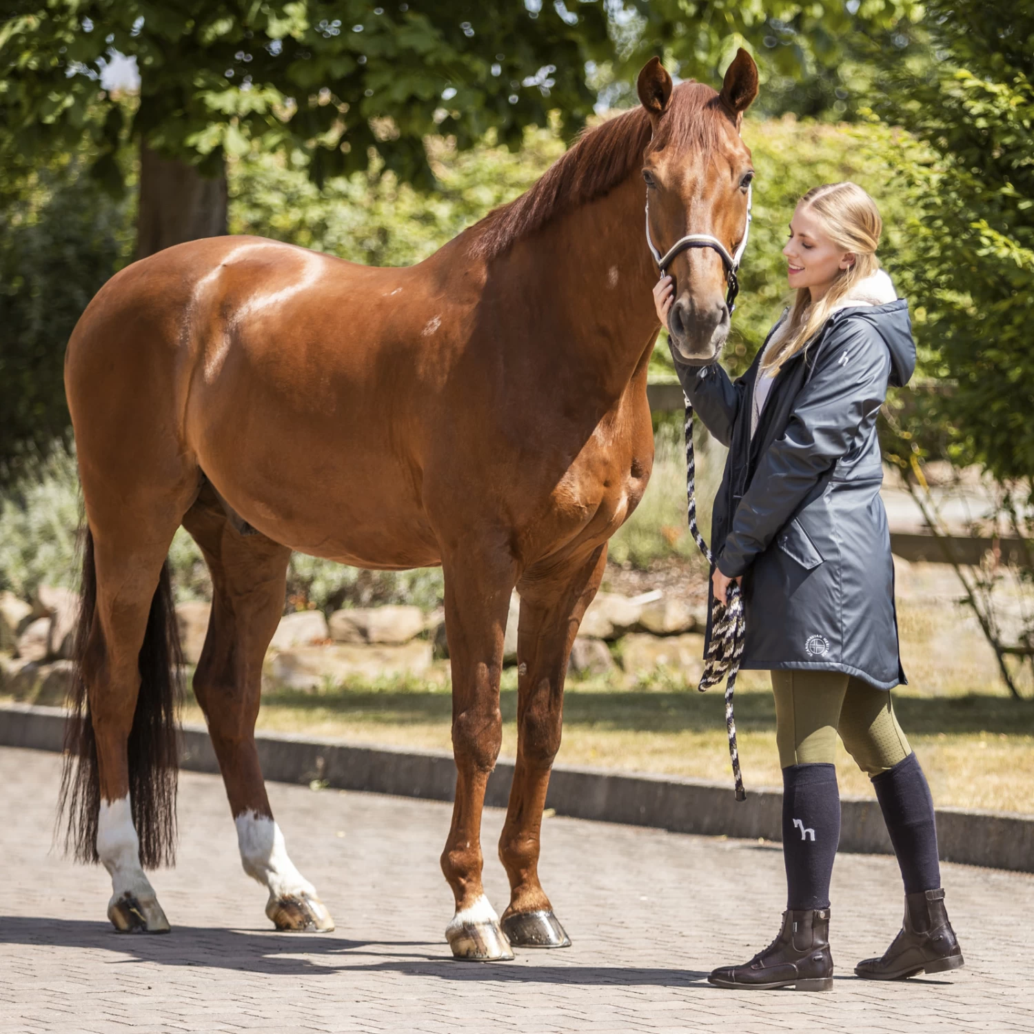Our Horze Sandnes halter is made from colorful fabric with soft neoprene lining at nose and crown. Adjustable buckles ensure the perfect fit. It matches the Horze sandnes lead that is soft and easy to hold. Strong snap hooks on both halter and lead close safely. Pair this set with our Horze Sandnes fleece cooler for a full look!