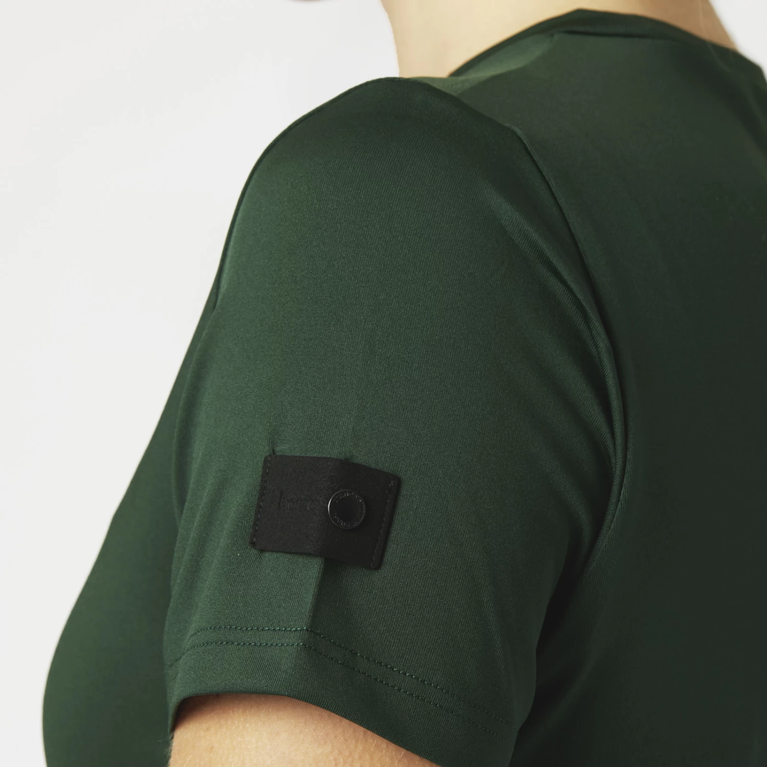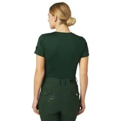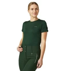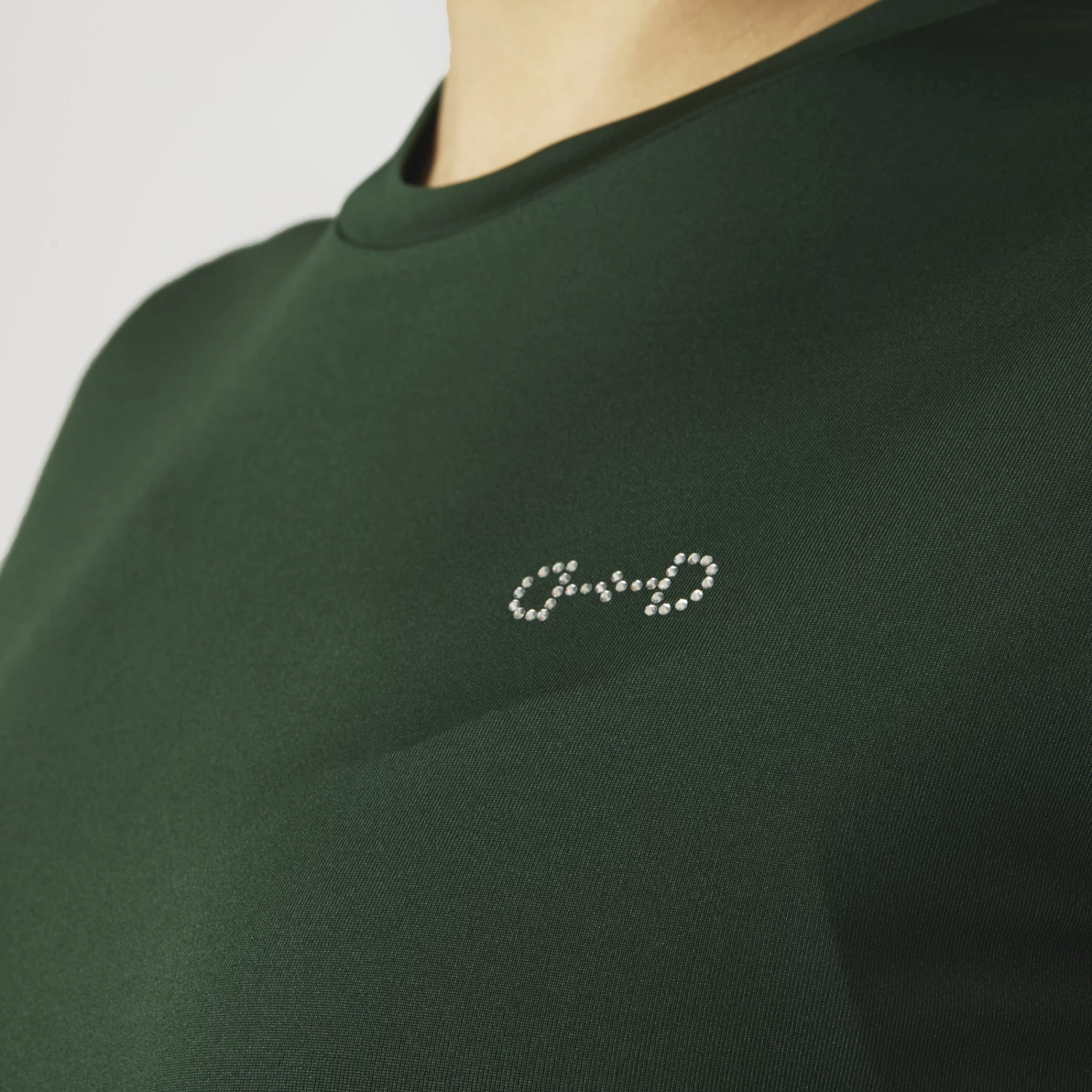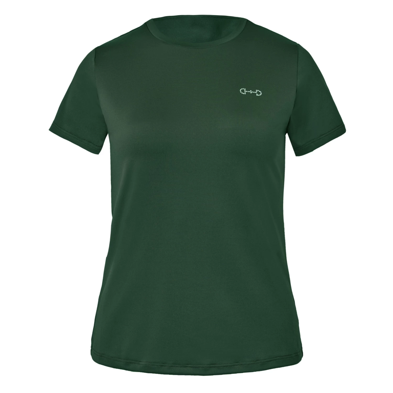 Our Horze Tabitha t-shirt is super light and breathable, keeping you cool during training or on stable days. Elastic fabric offers a nice fit, and stylish colors can easily be paired with your favorite breeches, jacket or jumper. The timeless cut will not go out of style. A small crystal detail in bit form adds an elegant touch.