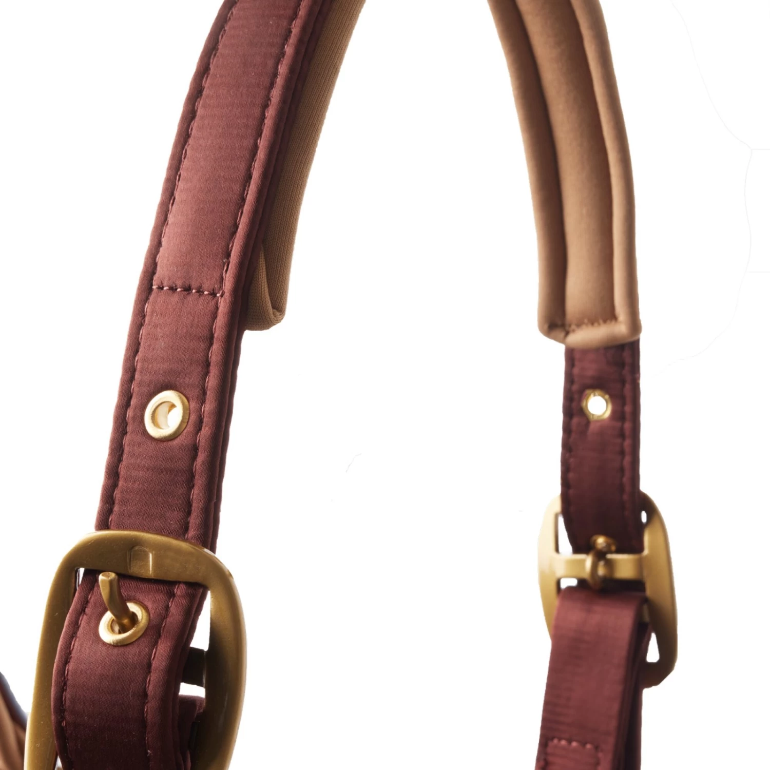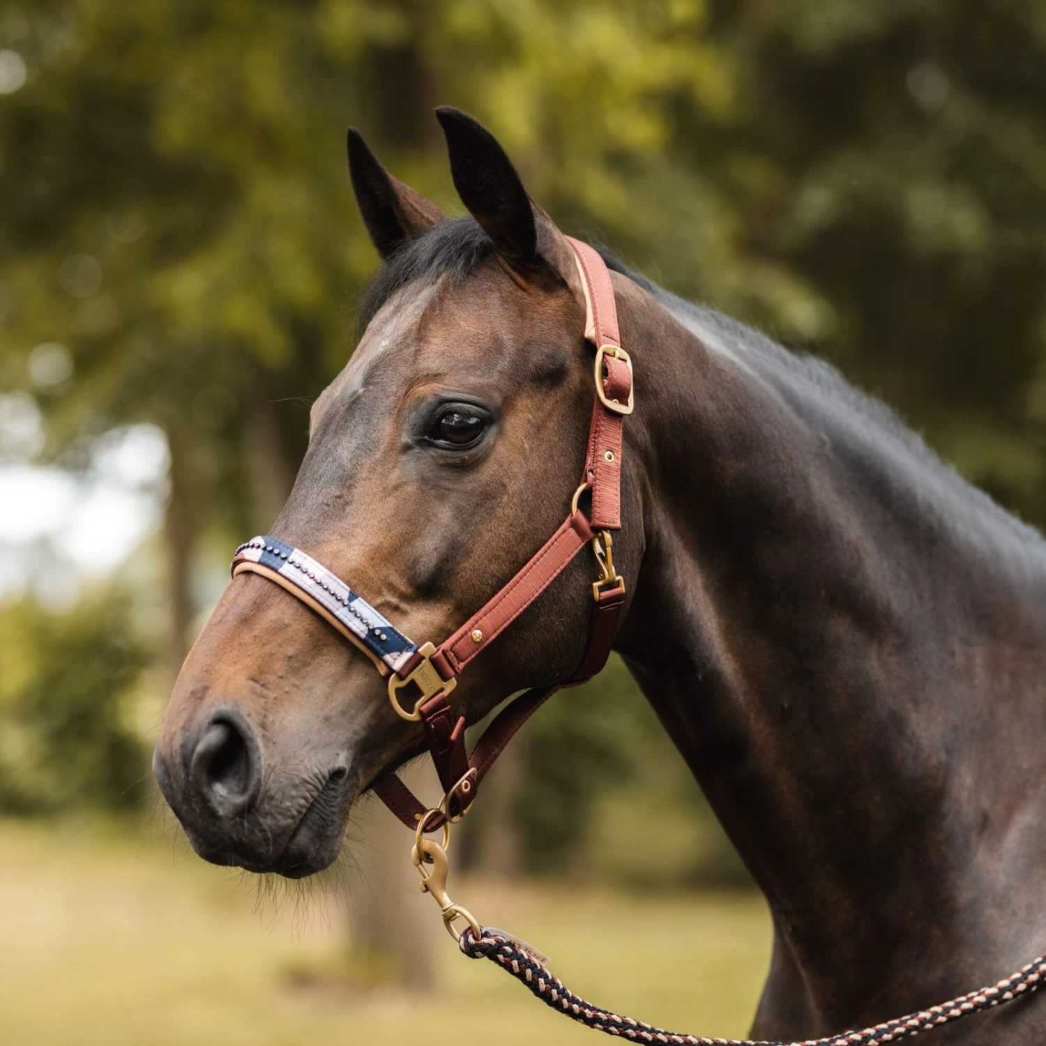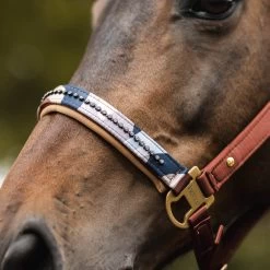 Elegant halter with crystal noseband in Terrazzo pattern and metal fittings in satin gold color. Soft neoprene padding at nose and neck to prevent chafing. Adjustment options for the perfect fit. Matching leads with snap or panic hook available (#22348, #22698).