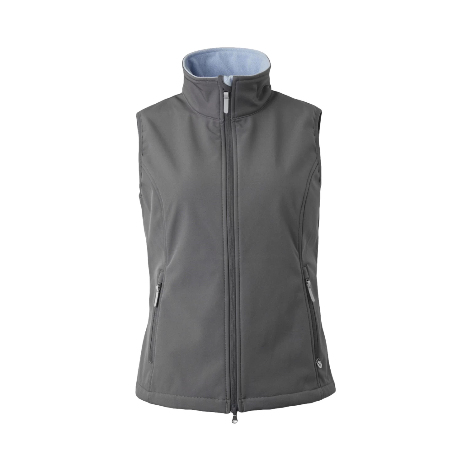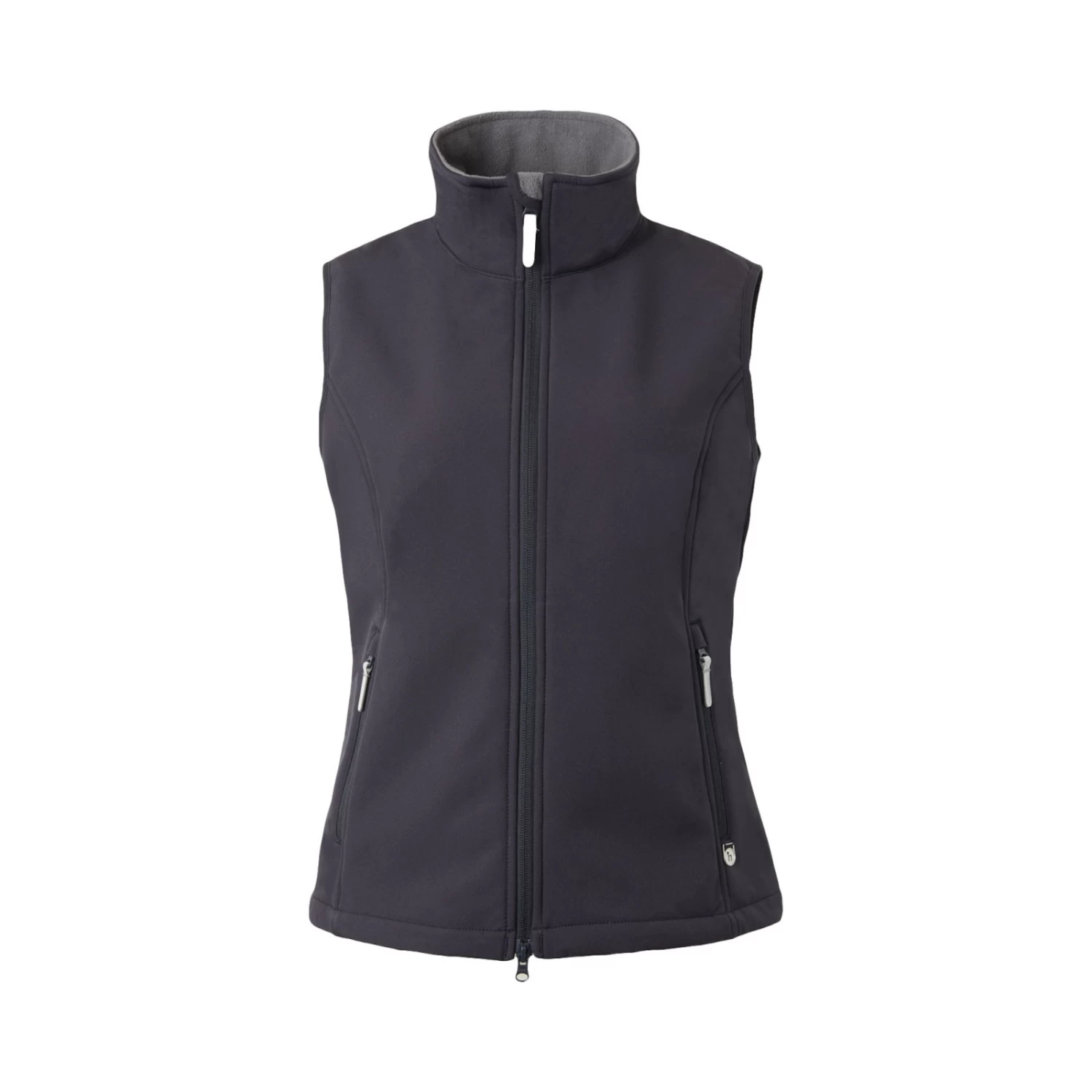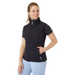 This functional yet stylish women’s softshell vest with a soft fleece lining in contrasting color is the perfect option for layering or warmer sping days. It’s water proof fabric and the slight stand-up collar come in handy during less pleasant weather. The two-way front zip make the jacket perfectly suitable for riding and the spacious zipper pockets allow you to stow away keys or your phone while being at the stables. The drawstring inside the back waist panel creates a flattering figure if tightened.