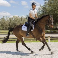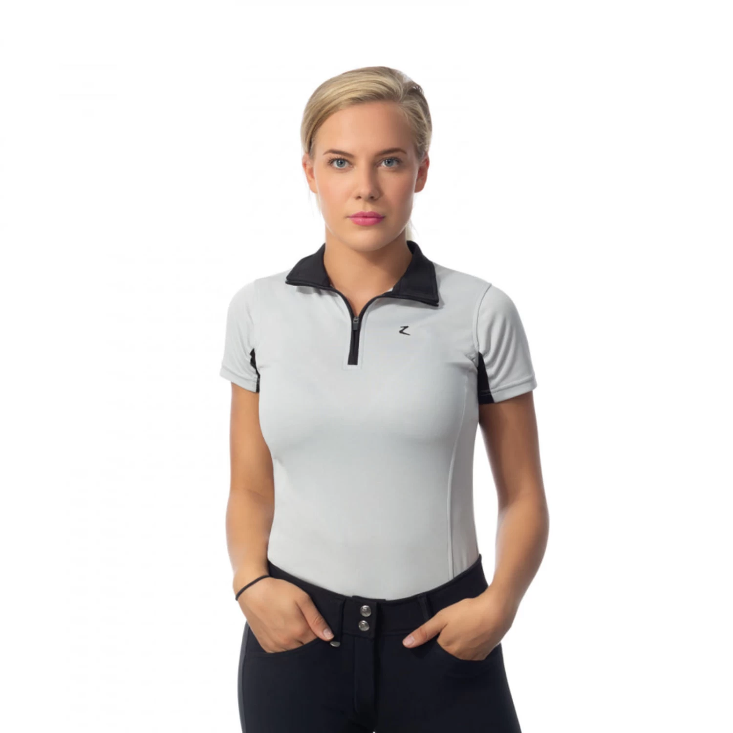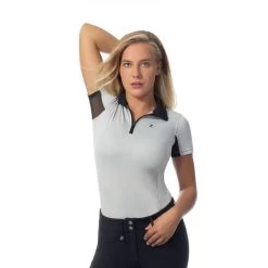 This stretchy and breathable sun shirt is both stylish and comfortable, perfect for riding or casual occasions. The quick-drying fabric offers UPF 30+ protection and works with the mesh under arms to provide an ultimate cooling effect while you ride. The 1/4 zip front allows you to wear the collar up, or down to reveal the contrasting inner lining of the collar. Choose from a variety of trendy or traditional colors and pair with breeches for a cool summer look.