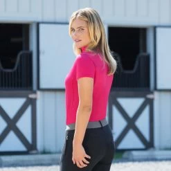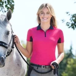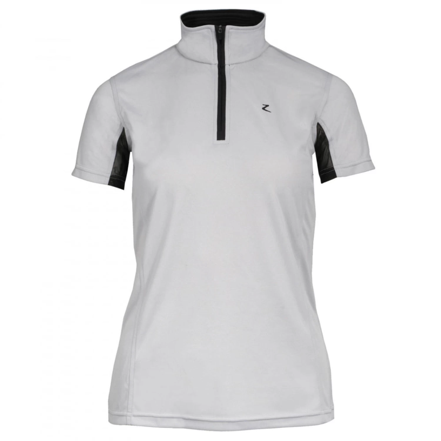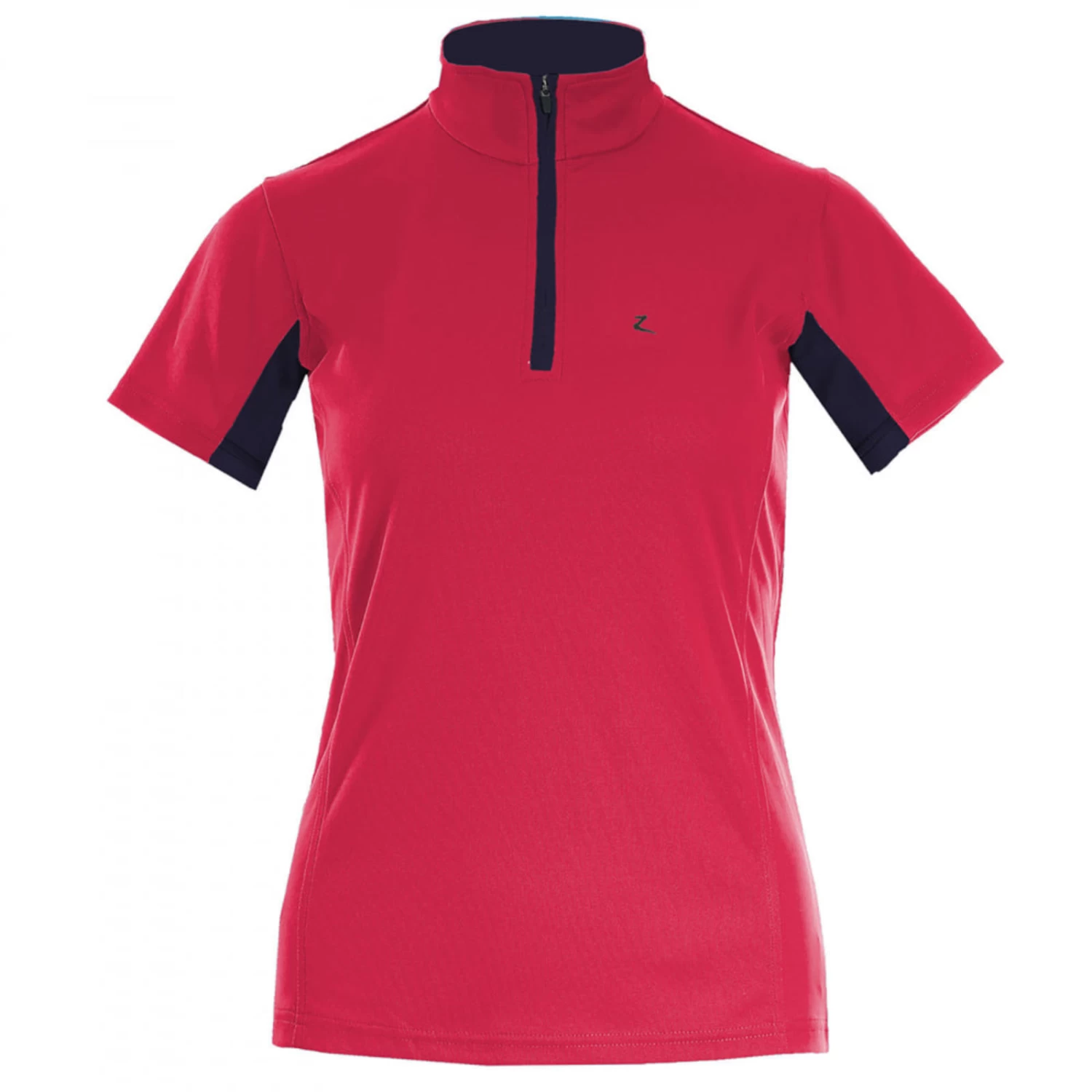 This stretchy and breathable sun shirt is both stylish and comfortable, perfect for riding or casual occasions. The quick-drying fabric offers UPF 30+ protection and works with the mesh under arms to provide an ultimate cooling effect while you ride. The 1/4 zip front allows you to wear the collar up, or down to reveal the contrasting inner lining of the collar. Choose from a variety of trendy or traditional colors and pair with breeches for a cool summer look.