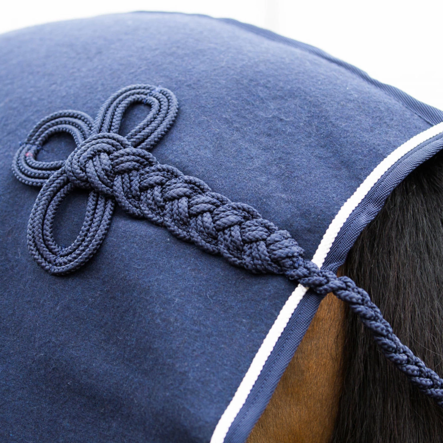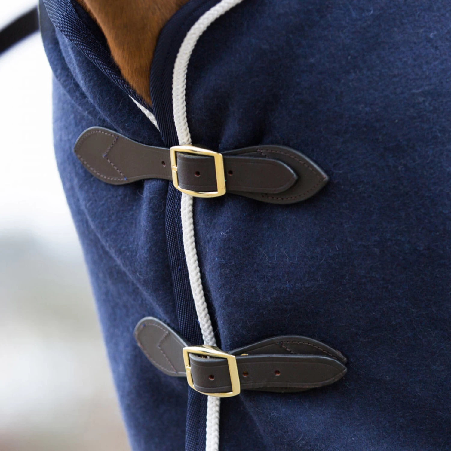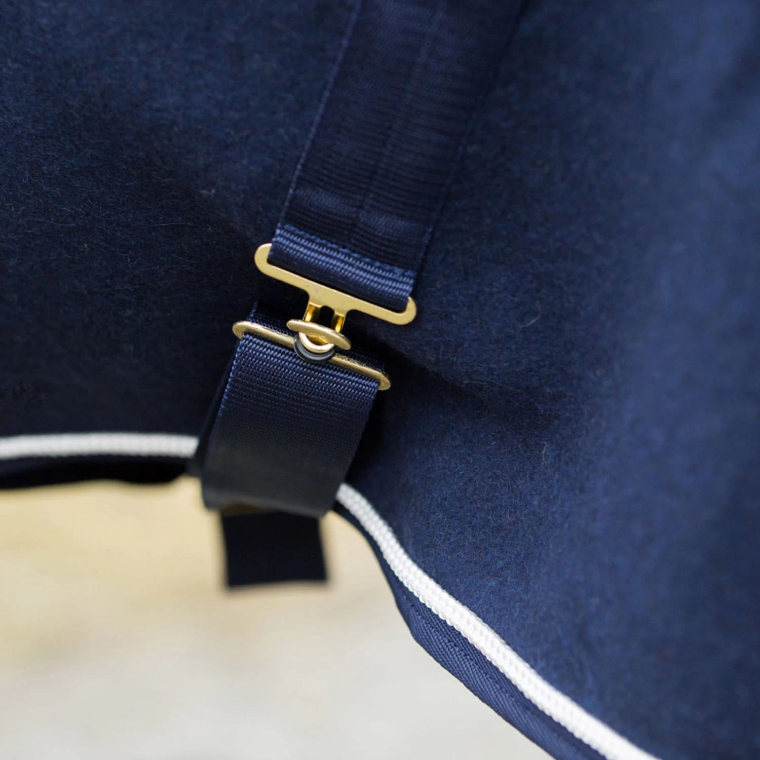 Everyone likes to make an entrance when their horse steps off the trailer at a show. The Horze Vail Wool Blanket is a beautiful choice with its thick wool construction, subtle details, and it fits like a custom sheet. The breathable wool keeps your horse warm during travel but can double as a functional cooler as well. Quality workmanship and traditional design are abundant in this wool blanket and is offered at a wonderful price that won’t break the bank.