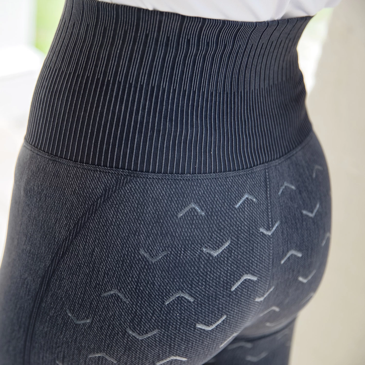 The Horze Vanessa tights are made with a minimum amount of seams and therefore super flattering! The denim look gives them a cool appearance, and the silicone full seat ensures excellent grip in the saddle. The ribbed high waist keeps them in place and is extra comfortable. Combine them with your favorite Horze top and boots and you are good to go!