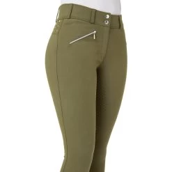 These affordable breeches are made with a high waist that is flattering and keeps them in place. The silicone full seat keeps you safely in the saddle. Elastic leg bottoms fit comfortably under your favorite boots. Beautiful rhinestones along the back add a subtle shiny detail.