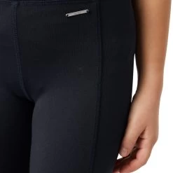 A classic pair of kids’ riding tights made of soft stretchable fabric for wearing comfort. The knee grip features a delicate Aztec print pattern. On the left thigh a large pocket offers room for your kid’s phone. A small logo metal charm can be found on the left front below the waistband.