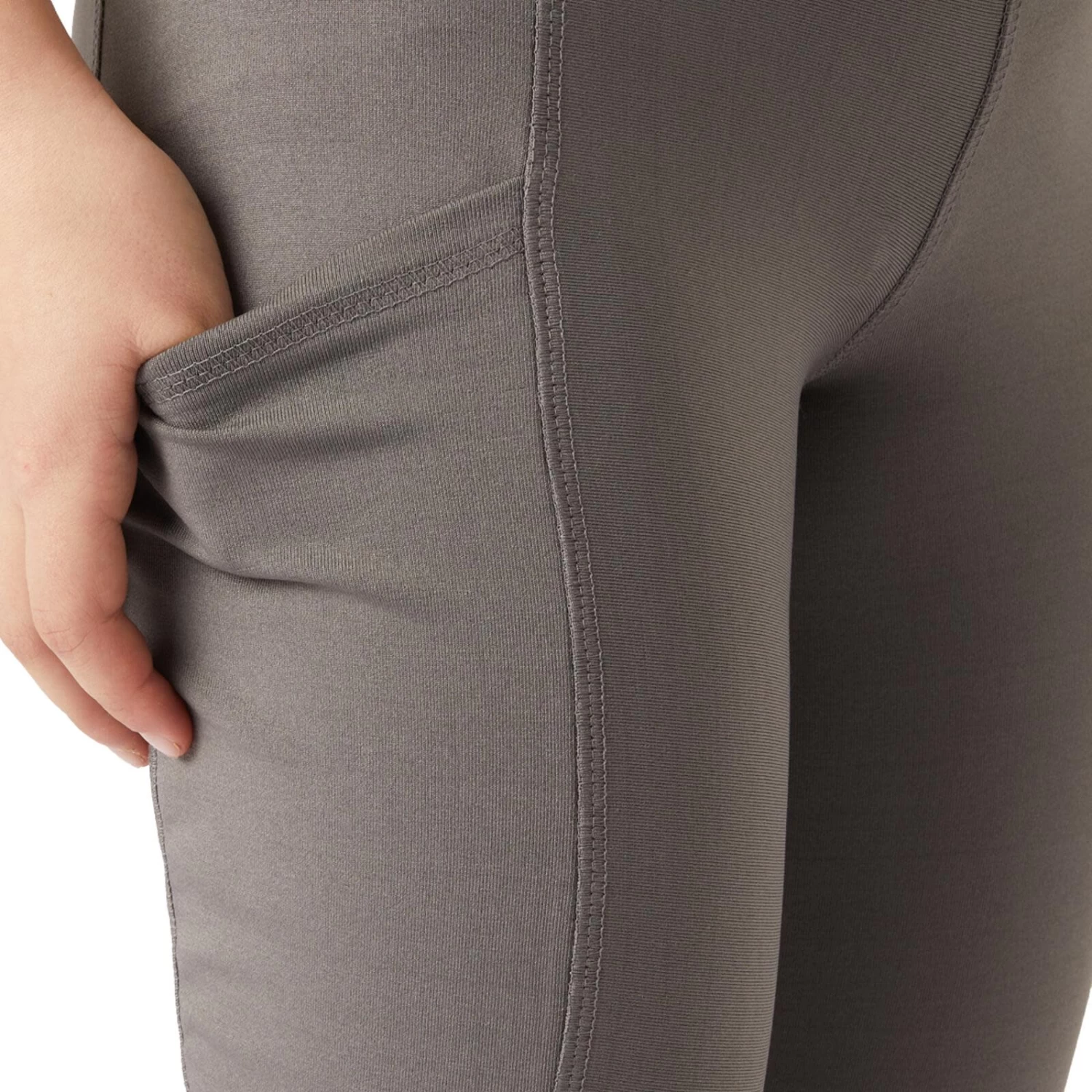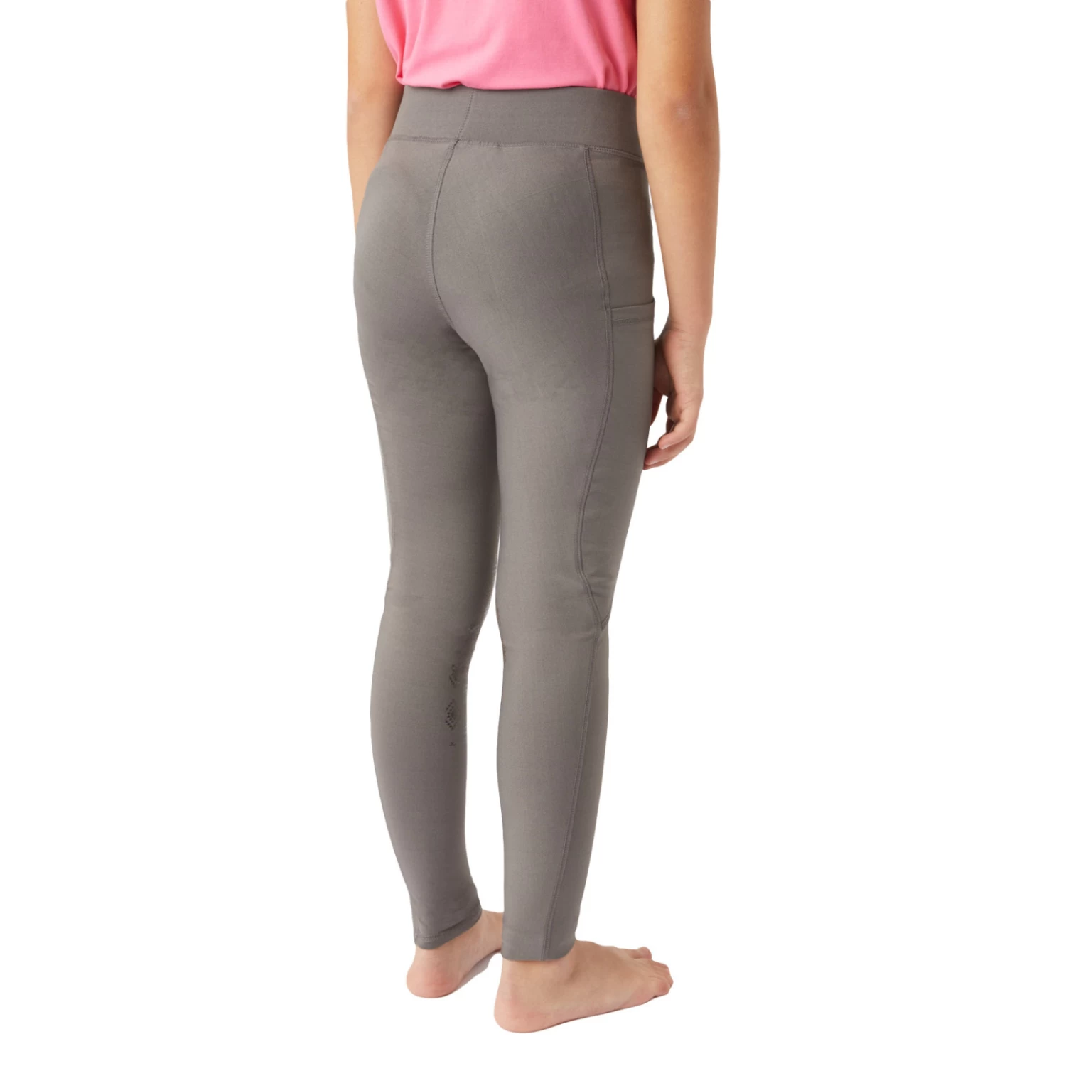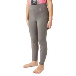 A classic pair of kids’ riding tights made of soft stretchable fabric for wearing comfort. The knee grip features a delicate Aztec print pattern. On the left thigh a large pocket offers room for your kid’s phone. A small logo metal charm can be found on the left front below the waistband.